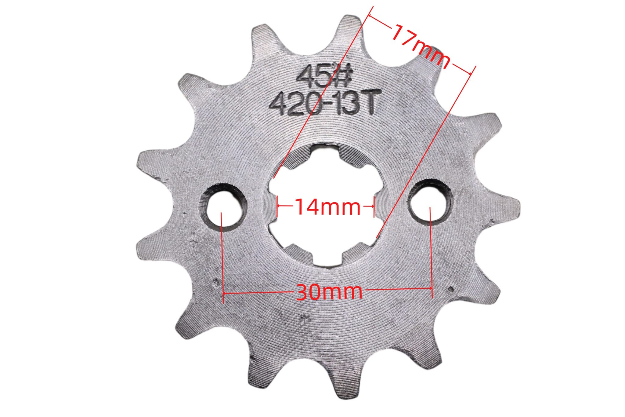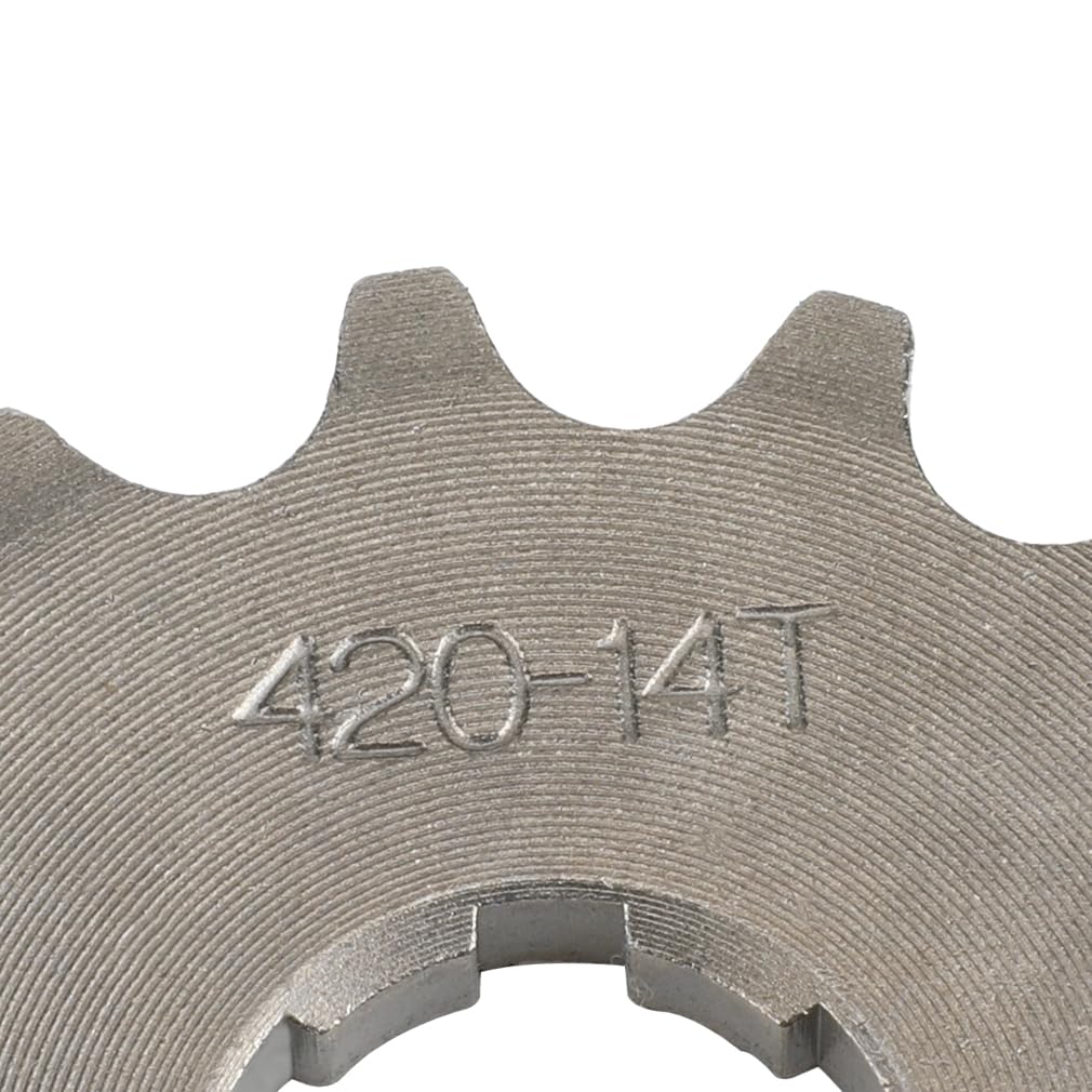 Pignon Avant Pit Bike Pignon Avant Moto 50cc à 125cc - Pour Dirt Bike, Pit Bike, ATV - TaoTao, Roketa, Lifan - 420-15T 15 Dents 17mm Axe Pignon Dirt Bike 50cc 125cc Pignon pour pit bike #420, diamètre intérieur 17mm, 17 dents. Rider Concept, vente pièces dirt bike, chaîne, couronne, pignon, attache rapide, guide chaîne, patin, roulette et tendeurs de chaîne,... pour professionnel 428 Taille 14 Dents 17 Mm Pignon Avant Moteur Pour 50cc 70cc 110cc Remarque : Veuillez vérifier attentivement les photos et le modèle avant achat pour vous assurer de la compatibilité Moto 420-18T Pignon Avant 17mm Remplacement pour 50cc 70cc 90cc 110cc 125cc D... · 49,99 € de livraison · Inclut les droits et taxes d'importation · Livraison... Contenu : 1 pignon avant 17 dents, 1 maillon principal, 2 Joints, 2 boulons, 1 gant Remplacement pour Taotao 110 50 cc, 70 cc, 90 cc, 110 cc, 125 cc (2019) Dirt Pit Bike, Mini Bike, ATV, 4 roues, cyclomoteur La surface des dents finement polie assure un engagement plus fluide avec la chaîne, réduisant ainsi le bruit et les vibrations Pignon avant 420-17 dents, 17 mm, remplacement pour motos 50 cc, 70 cc, 90 cc, 110 cc, 125 cc, 140 cc, 150 cc, 160 cc, Dirt Pit Bike, Mini Bike, ATV, 4 roues, cyclomoteur