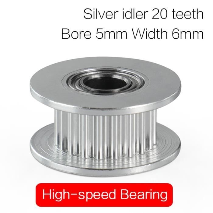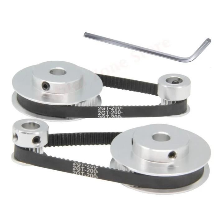 Courroie de synchronisation de poulie GT2 à 60 et 20 dents de 5mm/8mm, réduction 3:1/1:3 Synchronisation de 2 vis de montée Poulie Aluminium Précision ServoCity Poulie De Synchronisation à Pignon GT2 à Pas De 2mm (Alésage De 5mm, 20 Dents) - RobotShop Machine 3d Description:Matériau : Les poulies synchrones sont en alliage d'aluminium, garantissant durabilité, précision et haute précision de transmission. Fonctionnement sans effort : Avec un pas de dent précis pour une transmission fluide, offrant une efficacité de transmission élevée et des avantages en termes d'économie d'énergie. QUARKZMAN 2 Ensemble de Poulie Synchronisée GT-2 20 et 80 Dents 8 et 12 mm d'Alésage, avec 2 Pièces de Courroie de Longueur 200 mm Largeur 6 mm, Machine Cnc (20... La courroie de synchronisation fermée adopte du caoutchouc, qui est plein d'élasticité, offrant de bonnes performances de travail. Application polyvalente : Convient à un large éventail d'applications de transmission de machines industrielles, y compris les fraiseuses, les perceuses, les machines à tailler les engrenages, et plus encore, offrant polyvalence et fiabilité dans divers environnements. Avec un pas de dent précis pour une transmission fluide, offrant une efficacité de transmission élevée et des avantages en termes d'économie d'énergie. Transmission et fonctionnement : Assure un fonctionnement sans glissement, maintenant un rapport de vitesse constant pour des performances fiables.
