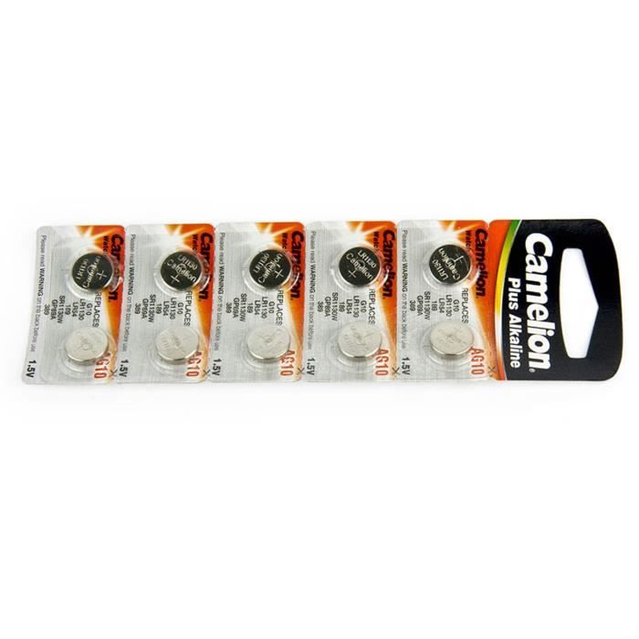 Piles Pour Calculatrice Jouet Lot De 10 Piles Bouton AG10 LR54 Camelion - 1,5V Alcalines - Compatibles LR1130, SR54, SR1130W Piles Bouton AG10 Camelion Large application : convient pour les utilisateurs de divers petits appareils électroniques, tels que la télécommande, l'appareil photo numérique, la montre et la radio, les jouets, la calculatrice et plus encore. Piles Bouton Lr1130 Lot De 10 1,5 V Anti-rampant - Petit Pile AG10 Remplacement Compatibilité de plusieurs modèles : les piles bouton LR1130 sont un excellent remplacement pour AG10/LR54/189/389/LR1130., Design de bouton : design de bouton, petite taille, facile à remplacer et à installer. Amplement utilisé dans les petits appareils électroniques tels que les montres, les calculatrices, les réveils, les thermomètres, la télécommande Piles bouton LR1130 alcalines sans mercure 1,5 V – Lot de 4 piles... Design de bouton : design de bouton, petite taille, facile à remplacer et à installer Modèle : LR1130/AG10., Diamètre : environ 11,6 mm., Tension : 1,5 V. Tension de sortie stable : 1,5 V, assurant une sortie stable Tension de sortie stable : 1,5 V, assurant une sortie stable. Haute capacité : la pile bouton LR1130 est de haute capacité et peut fournir une alimentation stable, répondant aux besoins des appareils Lot de 10 piles bouton alcalines LR1130 1,5 V AG10/LR54/189/389 pour divers appareils électroniques Caractéristiques : Haute capacité : la pile bouton LR1130 est de haute capacité et peut fournir une alimentation stable, répondant aux besoins des appareils.