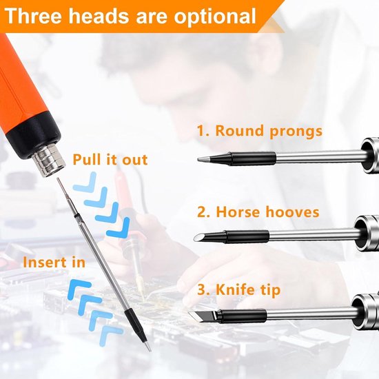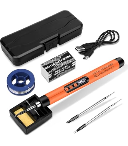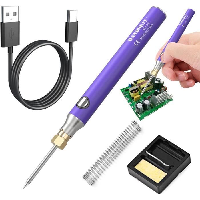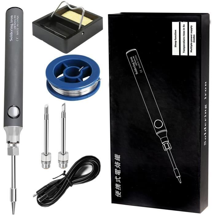 Méthode de charge : câble de charge Contenu de l'emballage : 1 fer à souder sans fil à température réglable. Cela améliore le confort de travail et augmente la stabilité du travail. 1 support de fer à souder., 1 fil à souder., 3 pannes à souder. L'éponge pour fer à souder élimine facilement les taches des pointes du fer à souder et prolonge leur durée de vie. Kit de piston à souder sans fil : le kit de fer à souder USB a une batterie intégrée de 1100 mAh qui est exempte de câbles et rend le contrôle plus libre et plus pratique Les outils de fer à souder sont largement utilisés dans le soudage de circuits imprimés, l'entretien des appareils, le bricolage et le soudage de bijoux. Équipé d'un port de charge TYPE-C, la charge complète prend environ 90 minutes et peut être utilisée en continu pendant environ 20 à 30 minutes après la charge. Kit de fer à souder sans fil - Fer à souder USB avec 3 températures... Chauffage rapide : ce kit de fer à souder utilise des noyaux de chauffage de haute qualité et peut être chauffé rapidement. La température maximale peut atteindre 450 °C. Fer à Souder USB Portable Kit De Fer à Souder à Piles, Fer à Souder Rechargeable USB Avec écran LCD Et Mode D'éclairage, 5 Fer A Souder Sans Fil Temps de fonctionnement continu : 20 minutes en troisième vitesse. Spécificités Nom du produit: Fer à souder USB sans fil Température réglable : 300-450 °C. Cet ensemble de fer à souder est très pratique. Contenu de la livraison : 1 fer à souder sans fil à température réglable ; 1 support de fer à souder ; 1 fil à souder ; 3 pointes à souder ; 1 câble de charge de type C ; 1 manuel d'utilisation ; 1 boîte à outils ; 1 colophane. Kit de fer à souder électronique multifonction : ce fer à souder sans fil utilise des pointes à souder interchangeables et est livré avec trois pointes de soudure différentes pour répondre à différents scénarios d'application. Cet ensemble de fer à souder est idéal pour les débutants, les soudeurs, les équipements de base et les techniciens de soudage. Fer à souder sans fil : fer à souder sans fil 800 mAh, poignée ergonomique, fer à souder sans fil rechargeable, ce qui rend l'opération plus libre et plus confortable, en outre, il est extrêmement léger, de sorte que vous pouvez le transporter facilement. Température maximale : 450 °C. Capacité de la batterie : 800 mAh. Vaileal Kit de fer à souder : fer à souder, batterie 800 mAh, fer à souder USB avec 3 températures réglables, 300 °C - 450 °C, 3 pointes à souder, kit de soudage portable, fer à souder sans fil, chauffage rapide, kit de soudure pour travaux électriques Chauffage efficace. La structure intérieure compacte est équipée d'une poignée ergonomique en caoutchouc qui est résistante à la chaleur, antidérapante et facile à saisir. 1 colophane Conseils: Les mesures étant prises à la main, les tailles indiquées peuvent varier de 1 à 2 mm., 2., Si vous avez des questions sur notre batterie de fer à souder, n'hésitez pas à nous contacter. KIT FER À souder USB chauffage rapide température réglable idéal pour Fer à souder avec 3 températures réglables : il y a 3 options de température pour le fer à souder, si le voyant lumineux est à 1, la température est d'environ 300-340 °C ; si le témoin lumineux est à 2, la plage de température est d'environ 360-400 °C ; et si le voyant lumineux est à 3, c'est la température la plus élevée, qui est d'environ 420 °C à 450 °C.