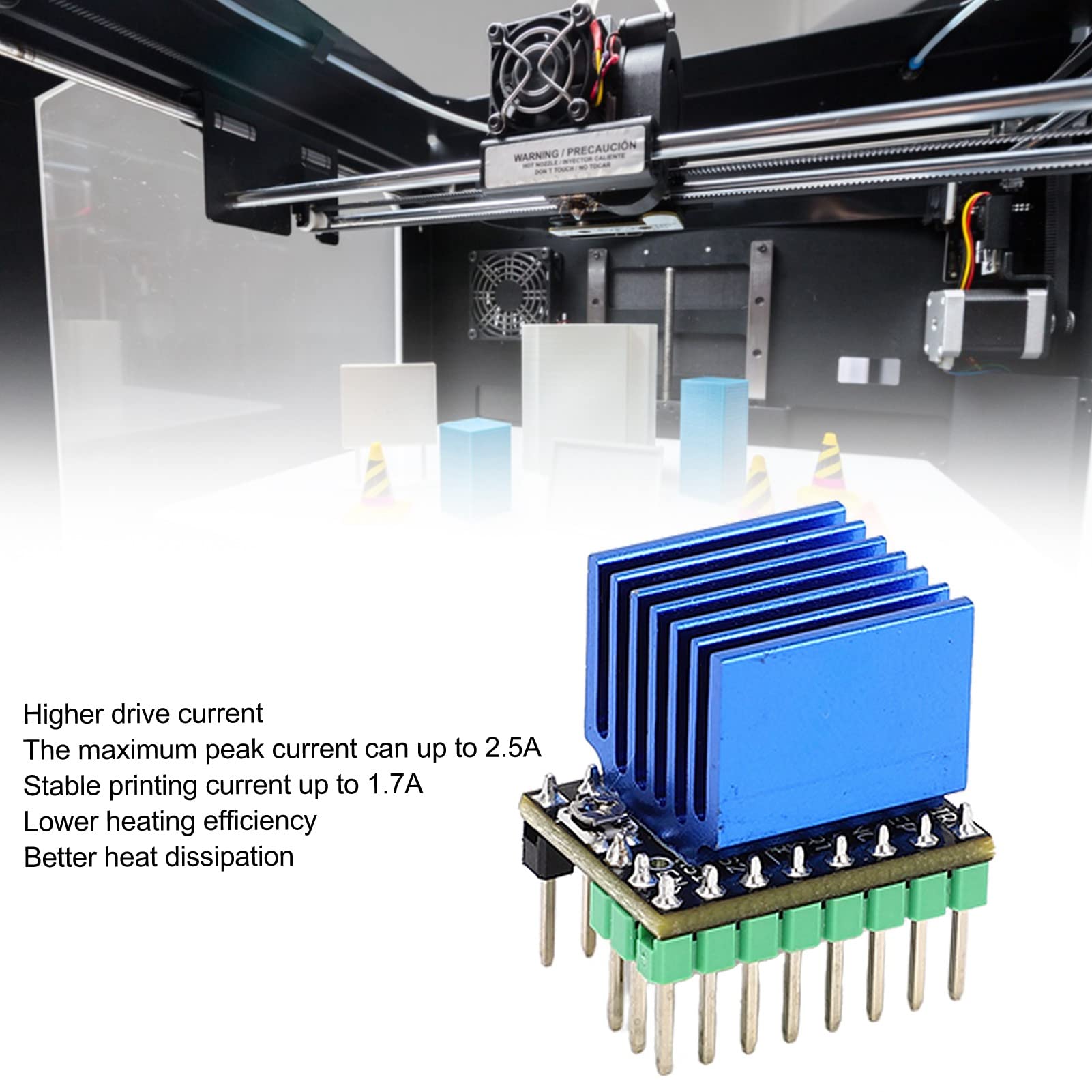 Driver Moteur Silencieux Imprimante 3D Lot De 5 Pilotes De Moteur Pas à Pas TMC2209 V3.0, Tige De Commande Remplacement Tmc2208 Amélioré Dissipation Thermique Le TMC2209 est compatible avec de nombreux pilotes traditionnels et TMC2208. Le hacheur StealthChop2 avancé de TRINAMIC garantit un fonctionnement sans bruit du moteur, atteignant un rendement et un couple moteur élevés Pilote DRAIVER de moteur pas a pas TMC2209 V2.0 pour Imprimante 3D Profitez d'une solution d' plus respectueuse de l'environnement et plus rentable qui donne la priorité à l'efficacité énergétique, parfaite pour les utilisateurs qui apprécient la durabilité et un BIGTREETECH TMC2209 V1.2 Pilote de Moteur Pas à Pas Pas à Pas, PièCe D... Conçu pour être compatible avec les cartes populaires telles que MKS gen skr1., 3 1., 4 et MKS sgen l, ce module offre une meilleure solution de conception qui répond aux divers besoins des utilisateurs, garantissant un processus d'installation pratique Liste des packages :5 x pilote de moteur pas à pas5 x dissipateur thermiqueRemarque :1., Verf mesure la tension de Gnd et du potentiomètre., 2., Veuillez ne pas connecter le moteur lors de la mesure de la tension, sinon le pilote sera facilement brûlé., 3., Veuillez connecter l'alimentation lors de la mesure de la tension, pas seulement l'alimentation USB., 4., Veuillez faire attention au sens, veuillez ne pas insérer par erreur Mise à niveau transparente : mettez à niveau votre configuration TMC2208 actuelle sans effort avec ce module pilote de moteur pas à pas qui remplace parfaitement le modèle populaire TMC2208., Bénéficiez d'un pilote qui intègre toutes les fonctionnalités clés du TMC2208 et offre des performances et des fonctionnalités améliorées, garantissant une transition transparente sans aucun compromis sur la qualité ou la fiabilité. Spécification :Type d'élément : Pilote de moteur pas à pasMatériau : PCB, alliage d'aluminiumModèle : TMC2209 V2., 0Micropas : 256 subdivisionsCourant d'entraînement : 2,8 AConfiguration : STEP, DIR ou UARTCourant d'usine par défaut : 0,85A Tension du moteur d'entraînement de : 5,5-28 VTension de fonctionnement logique IC : 3-5 VApplication du produit : diverses cartes de commande principales 3DCourant recommandé : pas plus de 1,7 A.