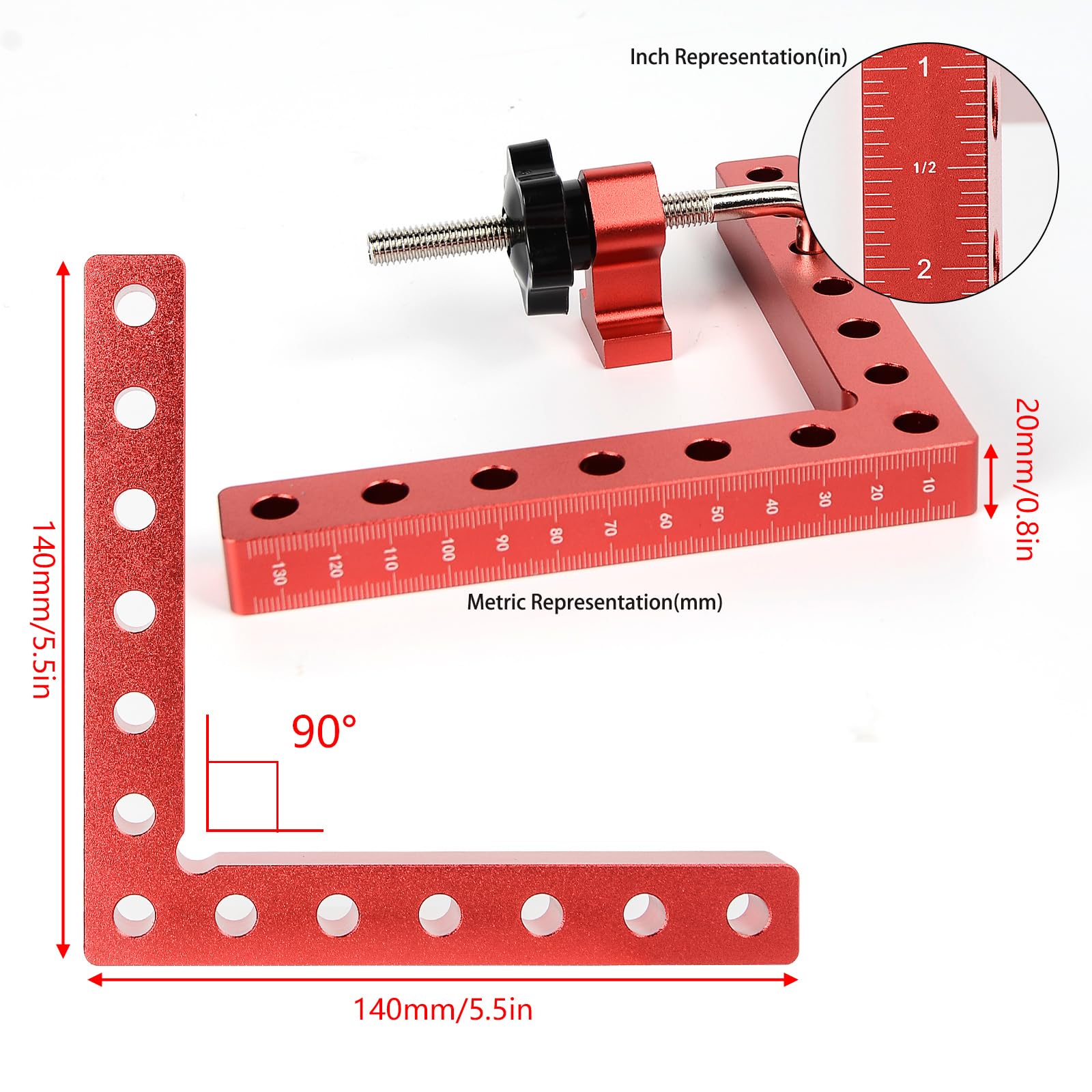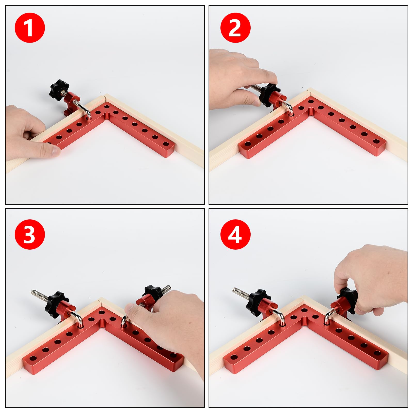 Spécifications :Condition : 100 % neuf et de haute qualitéMatériau : alliage d'aluminiumCouleur principale : rougeClip maximum : env., 75 mm/2,95 poucesTaille : env. Pince Angle 90 Degrés Menuiserie Pince à Angle Droit à 90 Degrés Pour Le Travail Du Bois, 4Pcs Presses D Ensemble Machoire Etau Reglable A Bois Serre Joint Angle Pour Cadre Photo Wedge Menuiserie Soudure 87902789 Pince Menuiserie Aluminium Cela permet un fonctionnement mains libres, vous donnant la liberté d'ajuster les matériaux et d'appliquer de la colle ou des attaches sans avoir à maintenir la pince en place manuellement. Capacité de serrage polyvalente : avec une épaisseur de serrage maximale d'environ 75 mm (2,95 pouces), cette pince convient à une large gamme de matériaux et de projets. Installation pratique sur un établi : dotée de deux trous dans la conception, cette pince peut être facilement installée sur votre établi avant de commencer vos tâches de menuiserie. Application polyvalente : cette pince d'angle à 90 degrés est idéale pour les projets de menuiserie renforçant les cadres photo et la fixation des aquariums. PINCE DE SERRAGE,--Pince multifonction à Angle droit de 4 pouces, 90 Caractéristiques :Notre pince est construite en alliage d'aluminium durable avec des vis en acier, antirouille, robuste et durable. 11 x 10,3 cm / 4,3 x 4 poucesPoids : env. L'épaisseur de serrage maximale est d'environ 75 mm, généralement 4 pinces sont utilisées ensemble. Généralement fabriquées par lot de quatre, ces pinces fournissent une pression uniforme sur les coins des angles précis de 90 degrés pour des résultats professionnels dans l'assemblage de cadres photo en bois et l'installation d'aquariums. Il offre la stabilité nécessaire pour créer des angles droits homogènes, ce qui en fait un outil essentiel pour les menuisiers professionnels amateurs de bricolage et tous ceux qui cherchent à réaliser des joints d'angle précis dans leurs projets. La pince d’angle de 90 degrés est l’outil idéal pour les artisans et bricoleurs recherchant un alignement précis dans leurs travaux. Grâce à son design innovant, elle permet de fixer des joints en « T » et des coins à 90 degrés en toute simplicité Pince d'angle à 90 degrés réglable en alliage d'aluminium - HURRISE... Avant de l'utiliser, vous pouvez l'installer sur votre établi à travers les deux trous, puis ajuster la mâchoire à l'épaisseur appropriée pour fixer ou renforcer les objets. Les mâchoires peuvent être ajustées indépendamment, vous pouvez les ajuster à une épaisseur appropriée pour s'adapter aux éléments qui doivent être fixés ou renforcés. Que vous travailliez avec des moulures de cadre photo fines ou des planches de bois plus épaisses, vous pouvez facilement personnaliser la largeur de serrage pour garantir un maintien serré et sûr à chaque fois. Description :Notre angle de 90 degrés est idéal pour le travail du bois, le renforcement du cadre photo et la fixation d'un aquarium.