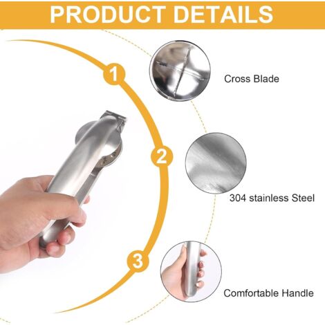 Veuillez permettre une différence de taille de 1 à 2 cm en raison de différentes mesures manuelles. Pince Châtaignes Coupe-châtaignes En Acier - Pince à Noix Multifonction - Avec Griffe - 17,5x5 Cm - Casse-noisettes Noix Châtaignes Outil Multi-noix Avec son utilisation multifonctionnelle, c'est le complément parfait à vos appareils de cuisine pour répondre efficacement à vos besoins en matière de casse de noix. Outil épluchage Levier Acier Inox Pince à Châtaignes - Pince à Noix - Ouvre-fruits Secs - Outil à Châtaignes - Coupe-châtaignes - Pince à Marrons - Balanc Étiquette - Maison Décortiqueur Levier Cuisine Pratique Liste de colisage:1 x outil pour craqueler les châtaignesNote:En raison des différences de luminosité et de réglage de l'écran, la couleur de l'article peut être légèrement différente de celle de l'image. 【Conception ergonomique】 Notre trancheuse à châtaignes présente une texture antidérapante brossée qui offre une prise confortable et stable autour de la poignée élargie et renforcée. Pack De 2 Coupe-Marrons, Coupe-Marrons, Coupe-châtaignes, Couteaux À Châtaignes, Casse-Noix, Outil Coupe-Marron Portable Multifonction pour Noix, Décortiqueur De Châtaignes Faits saillants principaux Dites adieu au travail manuel et profitez d'une préparation facile des marrons 【Structure robuste】 : avec sa construction robuste et ses matériaux solides et résistants à l'usure tels que le PP de haute qualité et l'acier inoxydable, notre trancheuse à châtaignes garantit un pelage sans effort et une durabilité fiable. 17,49 € 13,99 € Ajouter Couteaux à châtaignes - Pack de 2 - Ergonomique - Antidérapant - Durable - Multifonctionnel 3 / 5 1 avis Livraison gratuite1 Avec cet outil, même les noix les plus grosses peuvent être traitées sans effort, il est facile à utiliser et est parfait pour un usage familial quotidien 【Écrous faciles à décortiquer】 : sa taille compacte le rend facile à ranger et à transporter. Largement utilisé : en plus d'éplucher les châtaignes, notre outil est conçu pour une gamme de noix faciles à casser, notamment les noix de pécan, les amandes, les noix et plus encore. Nous l'avons conçu en pensant à l'expérience utilisateur et avons créé un outil qui est sûr de durer. 【Haute praticité】 : L'outil coupe-châtaignes révolutionne le processus d'épluchage en utilisant le principe du levier optimisé.