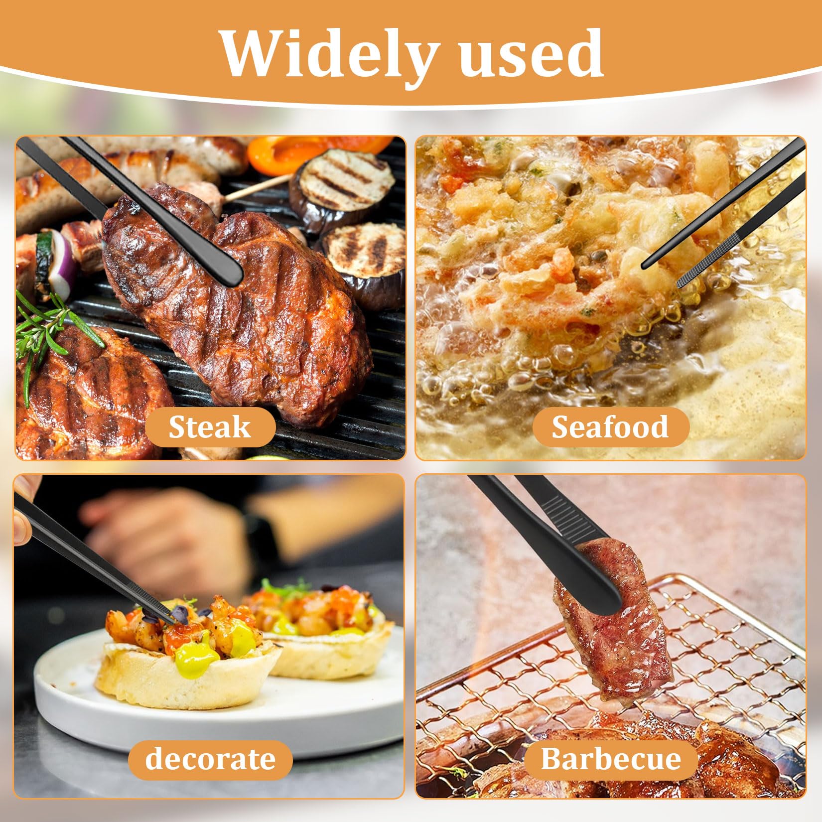 Caractéristiques : Matériau : Acier inoxydable Longueur : 30 cm Couleur : Noir Contenu de l’emballage : 1 pince à tête droite 1 pince à tête ronde Garantie après-vente : Pour toute question, n’hésitez pas à nous contacter. Clips d'Étanchéité Alimentaire, Pinces pour Sachets,24 pcs Clip Elles protègent efficacement des sources de chaleur et préviennent les brûlures. Pince Cuisine Inox LEAFS 2 Pièces Pince Barbecue Avec Anneau Métallique Conception Pince Tête Ronde Et Pointue Cuisine Les pinces à tête pointue sont utilisées pour disposer les aliments petits et délicats et permettent des travaux de décoration délicats. Nous nous ferons un plaisir de vous répondre. Pince Cuisine,Pince Cuisine Inox, Pinces De Cuisine Professionel... Elles conviennent également à la préparation de steaks, de viandes tranchées, de travers de porc, de saucisses, de poissons, de légumes, de ragoûts et de grillades. Facile à saisir et à utiliser, il est adapté aux travaux précis et délicats. Les pinces Hotec sont de très bonne qualité : l'inox est solide, le design est pratique et elles sont très agréables à manipuler. La longueur de 30 cm est... Conception ergonomique : Le manche est antidérapant et ergonomique. Matériau robuste et durable : Fabriquées en acier inoxydable de haute qualité, ces pinces de cuisine sont d'une finition soignée, présentent une belle couleur, ne se décolorent pas, résistent aux rayures, à la corrosion, à la rouille, à la déformation et à la casse. Leur longueur de 30 cm offre une prise en main confortable et se rangent facilement. Elles ne se décolorent pas facilement, sont résistantes aux rayures, à la corrosion et à la rouille, et sont durables., 2., Mesurant 30 cm de long, ces pinces offrent une prise en main confortable et un rangement peu encombrant. Polyvalentes : Elles conviennent pour cuisiner, frire et servir, décorer des gâteaux et des plats, remuer des aliments, préparer des raviolis et des rouleaux de printemps, ramasser du caviar, des grains de maïs, des pignons de pin et des canneberges, etc.