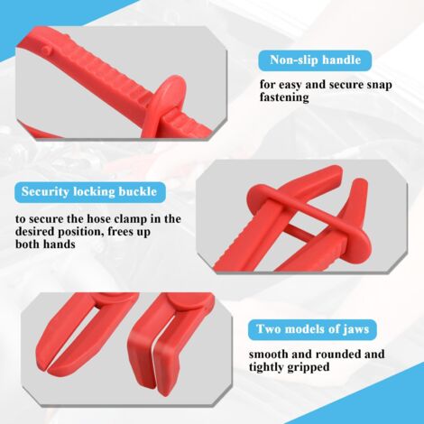 Pince Durite Lot De 6 Pinces De Refroidissement, Frein,Pince A Collier Durite,Pince À Clamper Infirmiere,Pince A Collier Durite,Pour Tuyaux De Carburant, Tuyaux De Frein Pince à Collier De Durite Fonction de Serrage Sécurisée]La pince pour tuyaux souples est équipée d'une bague de sécurité permettant une fixation fiable à l'emplacement souhaité. La fonction de verrouillage intégrée et la bague de blocage réglable assurent une manipulation aisée des tuyaux tout en évitant les dommages et les fuites de liquide.[Caractéristiques Pratiques]Grâce à sa couleur bleue... Pince Durite Pince De Serrage De Tuyau De Frein, Ensemble D'outils De Serrage De Tuyau Flexible Pour Tuyaux De Carburant, Conduites De Gaz, Tuyaux De Liquide De Refroidissement, Tuyaux De Radiateur 3 Pièces(Rouge Pinces Durite Refroidissement 【Fonction de Serrage Sécurisée】La pince pour tuyaux souples est équipée d'une bague de sécurité permettant une fixation fiable à l'emplacement souhaité. Ses bords lisses et arrondis ainsi que sa poignée ergonomique à surface antidérapante protègent la couche intérieure des tuyaux contre les dommages. ZJCHAO Pinces pour tuyaux à essence Outil de pinces de retrait de tuyau d'essence de filtre à... La fonction de verrouillage intégrée et la bague de blocage réglable assurent une manipulation aisée des tuyaux tout en évitant les dommages et les fuites de liquide. Ce matériau durable protège le revêtement intérieur des tuyaux et convient parfaitement aux ateliers, usines, artisans ainsi qu'aux bricoleurs et amateurs de DIY. Il peut être utilisé sur voitures, camions, SUV, véhicules utilitaires, tracteurs, ainsi qu'en agriculture, sur engins de chantier et dans les applications industrielles. 【Jeu de Pinces Pratique】Vous recevrez 6 pinces pour tuyaux souples réparties en 3 tailles différentes : 155 mm, 185 mm et 250 mm.