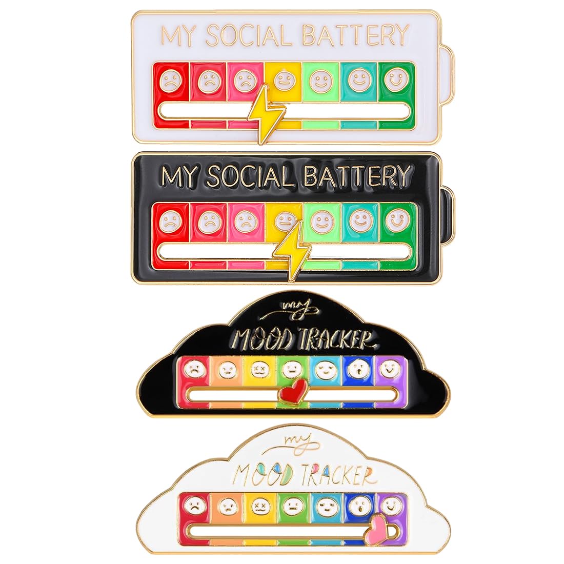 Inclus : b 2 x Broche d'Humeur My Social Battery Pin, 2PCS Épingles interactives en émail Épingles à piles sociales amusantes:Nos épingles à piles sociales sont conçues avec 7 humeurs, de la joie à la colère. You Are Safe With Me Social Battery PinsBroches Amusantes,4 PCS Aiguilles D'Humeur Interactives My Social Battery Pin Pins En Métal Broches Amusantes Pour 7 Jours Badge D'Anxiété Pour La Santé Mentale Communication Non Verbale Anxiété Idéal comme cadeau pour vos amis, votre famille ou toute personne qui a besoin d'un peu d'encouragement supplémentaire, ce badge inspirant est une façon réfléchie de montrer que vous vous souciez de vous et de diffuser un message positif. Paquet inclus:Vous recevrez 2 pièces d'épingles de batterie sociale, les couleurs sont noir et blanc, rectangulaires, 2cm de large, 5cm de long. Design Unique] : Le design de my social battery pin est unique et intègre intelligemment des éléments de mode et une expression émotionnelle. La broche contient différentes significations émotionnelles, qu'il s'agisse de bonheur, de tristesse, de tendresse ou de ténacité, elle peut être transmise à travers son langage de conception... Affichez vos émotions et votre style avec ces broches à piles sociales qui attirent l'attention. Les bords sont lisses, vous n'avez pas à vous soucier des rayures sur vos vêtements ou vos sacs. Disponibles en noir et blanc, ces épinglettes sont parfaites pour ajouter de la personnalité à votre sac à dos, vos vêtements ou vos bijoux. La livraison est gratuite à partir de 10€ d’achat pour les membres à volonté sur les produits expédiés par Elle ne se décolore pas et ne se raye pas facilement. Matériau:Cette broche mignonne et amusante est fabriquée en alliage de haute qualité avec une texture lisse et durable. Communication non verbale:Notre épingle à pile sociale vous permet d'indiquer silencieusement votre humeur. C'est une façon très intuitive et innovante d'avoir un cœur à cœur entre amis sans avoir à demander. Vous pouvez facilement ajuster le curseur pour exprimer votre humeur.