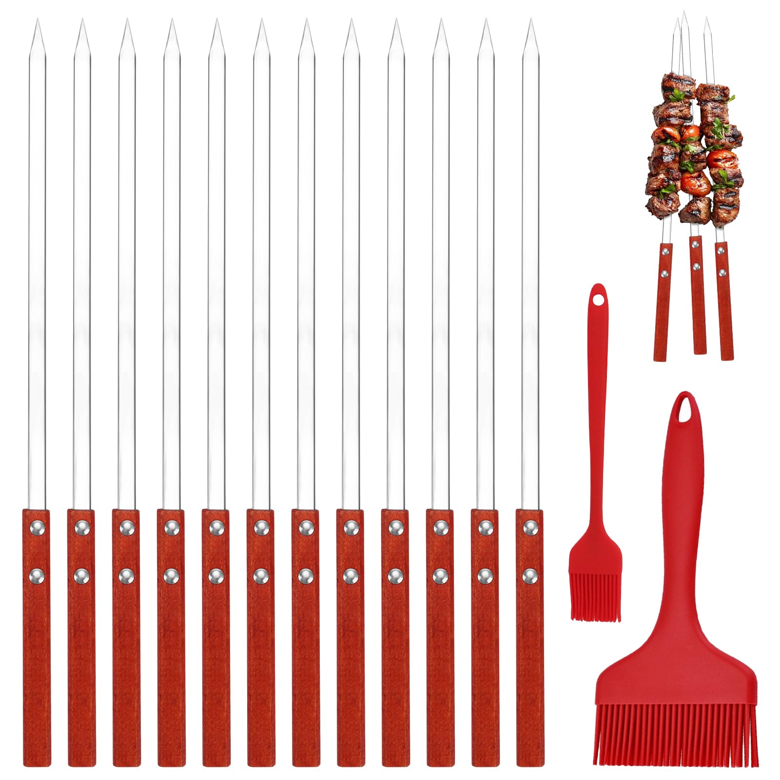 Com-four Brochettes de Grill 12x, brochettes shish Kebab en Acier Brochettes Barbecue INOX Brochettes pour Barbecue Brochette Bâtons pour... Brochette Légumes Viandes Generic Set De 12 Piques à Brochettes Barbecue - Acier Inoxydable Avec Manche En Bois - Prix Pas Cher | SN Brochette 40cm Manche Bois Set de 12 Brochettes en Acier Inoxydable avec manche en bois et 2 Brosse à Graisse - Parfaites pour Barbecue, Légumes, Camping, les événements dans le jardin! Matériaux de Haute Qualité : Les brochette de plein air sont en acier inoxydable, la surface est lisse et plane, durable, résistante à la corrosion, facile à nettoyer et réutilisable, compatible avec le lave-vaisselle. Brochettes pour barbecue BBQ Brochettes Réutilisable Acier Brochette... Dimensions Optimales: Les 12 pièces grandes pique a brochette pour barbecue avec manche en bois ont une longueur de 40 cm, une largeur de 1 cm et une épaisseur de 0,2 cm, juste la bonne longueur pour ne pas se brûler les mains en grillant des brochettes. Une alternative durable aux piques en bois ! 12 pièces de Kebab en acier inoxydable avec manche en bois, avec 2 pinceaux à huile ! Conception Pratique: Les 40cm brochettes en métal plat empêche les aliments de se retourner pendant la cuisson.