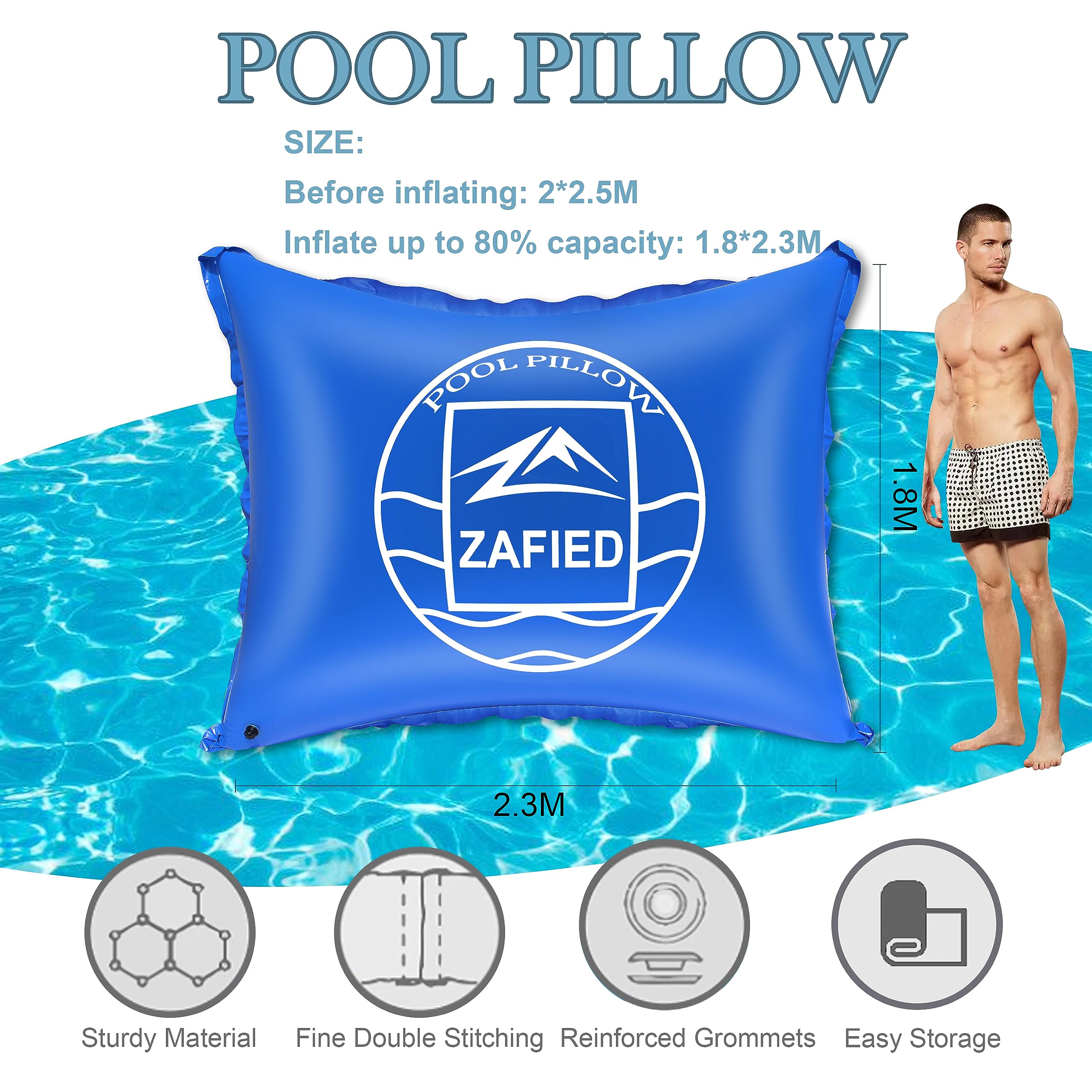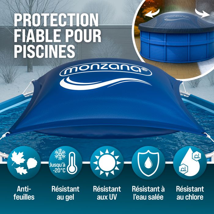 La manipulation est simple et pratique : avec une pompe à air domestique, le coussin de piscine peut être gonflé à environ 70 %. Coussin Piscine Hivernage Gonflable 2,1 m XXL, Coussin Gonflable Le coussin doit être gonflé à 70 à 80 % et fixé en toute sécurité au centre de la piscine avec la corde fournie. Coussin Gonflable Piscine Diamètre 2.1m PVC 0.5mm BerrysParadise Coussin Piscine Hivernage Gonflable 2,1 M XXL Ballon Hivernage Piscine Avec Corde 15m Fabriqué en PVC robuste de 0,5 mm d'épaisseur, le coussin de piscine est résistant à l'hiver, à la déchirure, aux UV et aux températures jusqu'à -20 °C. En outre, il peut également être utilisé comme ballon d'hiver pour piscine, jacuzzi ou fontaine. Coussin d'air de piscine, coussin de piscine, coussin d'hiver, taille... Utilisation polyvalente : ce coussin de piscine gonflable est adapté pour les piscines rondes, ovales et rectangulaires, ainsi que comme accessoire de piscine pour jacuzzi, fontaine, couverture de meubles de jardin ou bordure de piscine. Protection efficace : le coussin de piscine d'hiver BerrysParadise protège efficacement votre piscine de la neige, de la glace et de la saleté sur la couverture de piscine gonflable, empêchant ainsi les dommages ou la rupture de la couverture de piscine. Le coussin d'hiver gonflable pour bâche de piscine est conçu pour protéger votre piscine pendant la saison froide. Ce coussin aide à maintenir la bâche en place, évitant ainsi la formation de flaques d'eau dues à la neige ou la pluie Nous offrons une garantie du fabricant et un support client amical pour assurer votre satisfaction. Elle protège efficacement contre les feuilles, la saleté, la grêle et d'autres impuretés et sert également de revêtement de piscine rond ou de bordure de piscine. Facile à utiliser : compatible avec les pompes à air domestiques courantes. Ce coussin gonflable pour piscine offre une protection toute l'année, de sorte que votre piscine reste parfaitement protégée même en cas d'absence à long terme ou pendant la saison d'hiver. Protection hivernale fiable : le coussin d'air de piscine protège la housse de la neige, de la pluie, de la grêle et du gel en hiver, répartit la charge uniformément et empêche l'eau de couler à cause de l'eau, des feuilles ou de la glace.