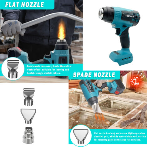 Ce pistolet thermique sans fil répond à une variété de besoins de bricolage, tels que l'emballage rétractable, les tubes thermorétractables, les décalcomanies, la soudure, le retrait de peinture, l'élimination des bulles, l'artisanat, la fabrication de bougies, la réparation électronique, le dégivrage et ainsi de suite Pistolet Thermique Sans Fil Makita Pistolet à Colle Chaude Sans Fil Pour Batterie Makita 18 V, Pistolet à Thermorétractable Décapage Température maximale : 550 °C. Décapeur thermique sans fil 18V avec une mallette - MAKITA DHG180RT (Outil seulement, pas de pile) Le pistolet thermique sans fil portable est alimenté par un moteur entièrement en cuivre, une alimentation en air à turbine et une forte puissance pour garantir une performance stable et un chauffage rapide en seulement 3 à 5 secondes, et peut chauffer jusqu'à une température maximale de 550 °C Pistolet thermique sans fil de 1728 BTU par Metabo HPT, 18 V RH18DAQ4M... 1 manuel d'utilisation (français non garanti) Contenu : 1 x emporte-pièce. Conçu avec un bouton de verrouillage, après activation, appuyez sur le bouton pour faire fonctionner le pistolet thermique, libérez vraiment vos mains L1NXIXI Pistolet thermique sans fil Makita 18 V (BL1830 1 pistolet thermique sans fil., 5 buses. Large application : ce pistolet thermique est livré avec 5 buses supplémentaires, peut contrôler le flux d'air et concentrer la chaleur sur des zones spécifiques, ce qui améliore considérablement la praticabilité des pistolets thermiques.