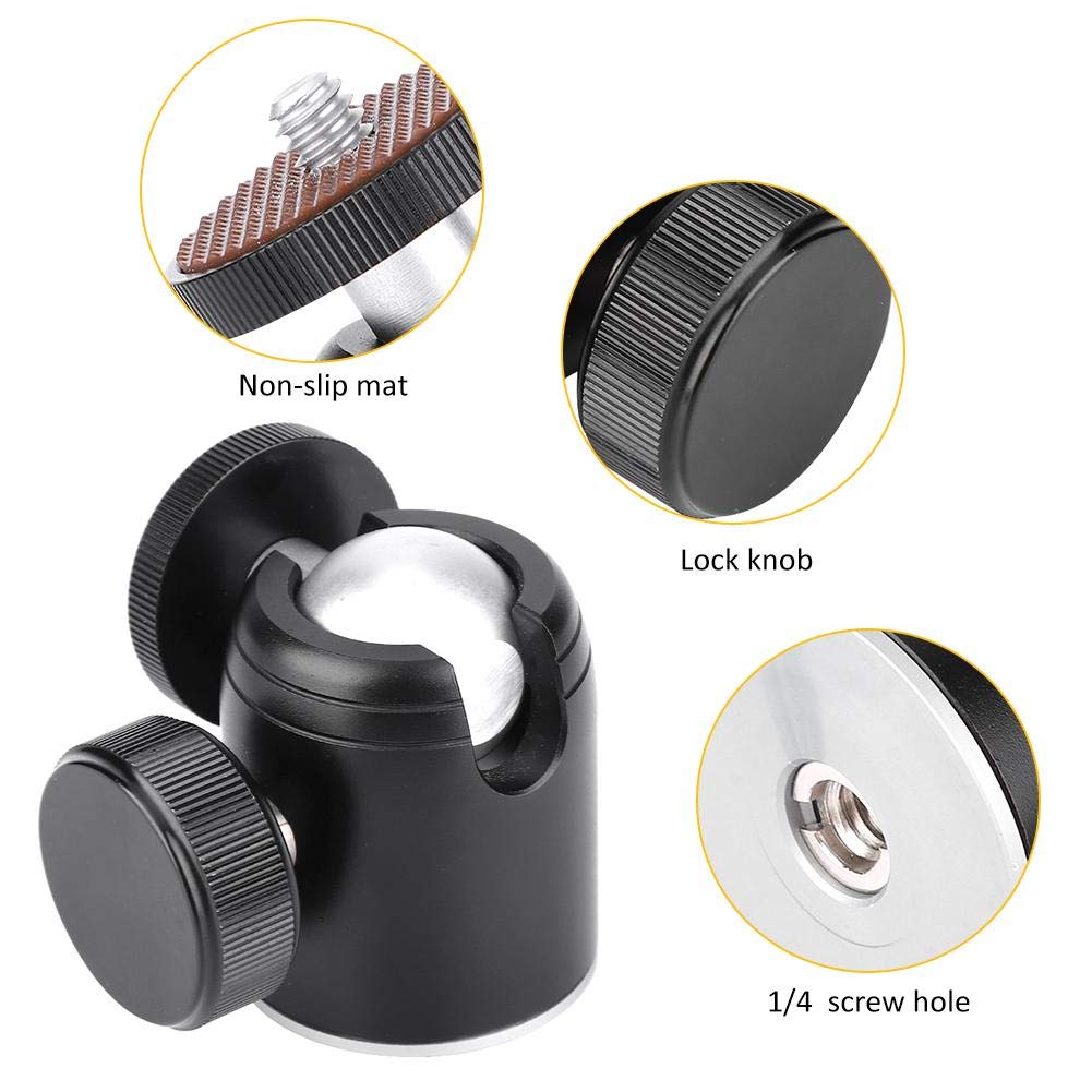 INF Mini Rotule Rotative à 360° Pour Appareil Photo Stabilit Amliore 7314281218744 La mini rotule appareil photo peut être tournée à 360 degrés, le poids de charge maximum est de 3 kg. Avec le bouton de verrouillage, la tête sphérique peut être ajustée à n'importe quel angle, adapté à une variété de caméras Rotule Pivotante Mini 360 Adaptateur De Mini Rotule Pivotante En Alliage D'aluminium Avec Vis De Support Caméra Trépied éclairage Raccord à vis : 1/4 & 3/8'' (avec un adaptateur 3/8'' vers 1/4''), Charge maximale : 3kg, Taille : Env., 5 * 4., 8cm / 2 * 1., 9in, Poids : Env., 90g, Paket-Liste : 1 * mini-boule Construction en alliage d'aluminium, antirouille, résistant à l'usure, durable, léger et portable, le support de charge est jusqu'à 3 kg Mini rotule - DIOCHE - Pivotante 360° - Alliage d'aluminium - Portable... 1 * adaptateur 3/8'' vers 1/4 Avec un trou de vis de 3/8 '' en bas et un adaptateur 3/8 '' à 1/4 '', cette rotule est universelle pour la plupart des trépieds La vis supérieure de 1/4 `` a un tampon en caoutchouc détachable qui peut offrir une protection antidérapante et anti-rayures à votre appareil photo Prend en charge la rotation de 360 ° dans le sens horizontal et la rotation de 90 ° dans le sens vertical, de plus, la rotule a une base rotative qui prend également en charge la rotation de 360 °