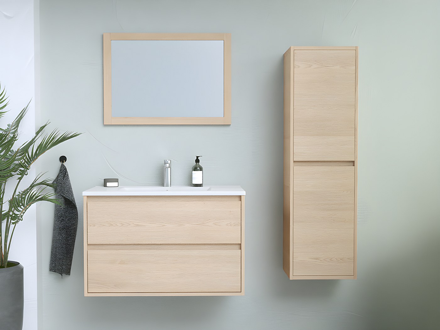 Matière : Panneau de particule, Robinetterie incluse : NON Meuble de salle de bain, double vasque à poser et miroirs, placage Meuble sous vasque Panneau de particule, Panneau et dérivés de bois Naturel clair Meuble Salle De Bain 150cm Meuble Sous Vasque Suspendu - Placage Chêne - 120 Cm - MILIPAM Meuble Vasque 4 Tiroirs Soft Close Caractéristiques Couleur (nuance) : Naturel clair Type de rangement : 4 tiroirs Meuble de salle de bain avec vasque à encastrer, placage chêne, 150 cm... Système Soft Close, Qualité supérieure du placage chêne, Vernis UV protecteur contre l’humidité Livraison Lors de la livraison, il est conseillé de vérifier que le bon nombre de colis a été livré. Faites de votre salle de bain une pièce propice à la détente grâce au style scandinave et à la couleur douce du modèle MILIPAM. On adore ses poignées très discrètes le long des tiroirs qui apportent du raffinement à ce meuble Finition : Vernis UV sur l'ensemble du meuble, Dimensions Longueur : 150 cm, Hauteur : 50 cm, Profondeur : 45 cm Utilisation : Spécialement conçu pour une utilisation dans la salle de bain Colis Colis n°1 : Longueur 157 cm, Largeur 63 cm, Hauteur 12 cm, Poids 38 kg, Colis n°2 : Longueur 161 cm, Largeur 56 cm, Hauteur 9 cm, Poids 10 kg, Il est compatible avec tous les styles de décoration et il trônera fièrement dans votre intérieur. Meuble sous vasque suspendu avec planche, placage chêne, dimensions L150 x l45 x H50 cm, fermeture avec système soft close, rangements avec 4 tiroirs, style scandinave, MILIPAM, meuble de salle de bain double vasque, meuble en bois , Rangement disponible : Tiroir