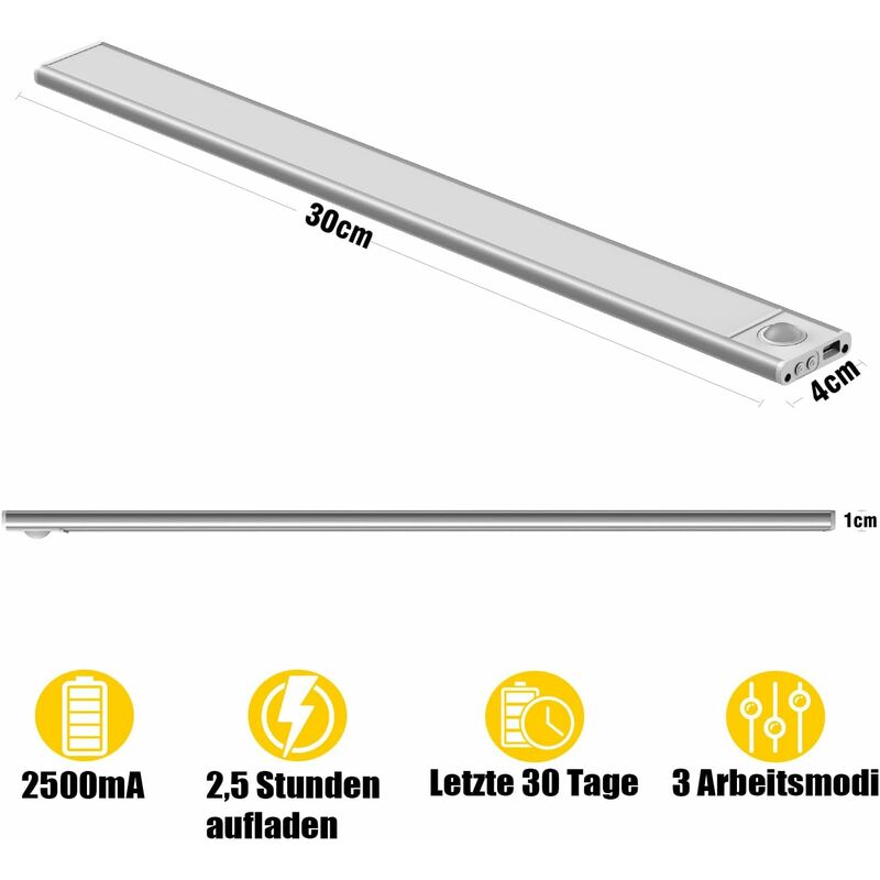 En mode capteur de nuit, la lampe ne s'allume que lorsqu'un humain est détecté dans un environnement sombre. Nettlife Éclairage sous meuble cuisine LED avec détecteur de mouvement - 30CM dimmable 3 températures de couleur argent - Maison De plus, l'éclairage LED s'éteint automatiquement si aucune activité n'est détectée pendant 15 secondes en mode capteur de nuit pour économiser de l'énergie. Lampe LED 3 Températures Couleur Ylatoial Lampe De Placard Détecteur De Mouvement 3000K, Dimmable Lampe LED Cuisine Sous Meuble 25cm 2000mAh Lumiere Veilleuse Sans Fil Rechargeable Reglette LED Placard Pour Armoire Couloir - 2 Pack Lampe Détecteur Mouvement Appuyez longuement sur le bouton de gradation, vous pouvez atténuer ou augmenter la luminosité de la lumière (luminosité de 100 % à 10 %) selon vos besoins. En mode toujours éteint, lumineuse reste éteinte. Lampe De Placard, 126Led Lampe Détecteur De Mouvement,750Mah Veilleuse... Il est conseillé de l'installer partout où vous souhaitez l'utiliser de manière décorative, comme des vitrines, des librairies ou des vitrines. 【Batterie 1200mAh】La lampe à batterie LED sans fil a une batterie intégrée qui peut être chargée avec n'importe quel adaptateur secteur USB 5V. ZHOUZMIN Lampe placard sans fil rechargeable 30cm Détecteur Mouvement LED Les luminaires d'armoire LED Ylatoial ont donc quelque chose de spécial. L'optique de la lentille donne à la lampe une forme élégante et particulière pour éclairer l'environnement. En mode toujours allumé pendant 5 heures (selon la fréquence d'utilisation et la luminosité). Les veilleuses sont dotées d'une gradation progressive de haute technologie. 【Léger et facile à installer】Cette lampe à détecteur de mouvement avec aimant intégré peut être placée n'importe où et ne nécessite aucun outil pour l'installer.