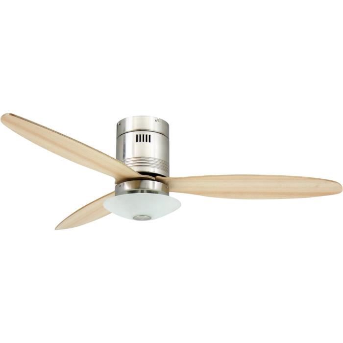 Garantie fabricant de 10 ans sur le moteur Diamètre : 132 cm, pour les pièces jusqu'à 25 m2 Couleur des pâles au choix : Marron / Wanaque Extrêmement silencieux, pas de bruit audible du moteur Télécommande incluse (lumière on / off, ventilateur on / off, vitesses de rotation) Pepeo Télécoande sans Fils Universalle pour Ventilateur de Plafond... Le plafonnier est adapté pour des ampoules de classe énergétique A++ - E, compatible avec lampes à LED. La lumière et le ventilateur se commandent séparément avec la télécommande fournie Données techniques 240 Volt / 50 Hertz Ventilateur Laiton Pales érable Ventilateur De Plafond Avec Télécommande Pour Ventilateur Westinghouse Ventilateur Plafond Silencieux 3 Vitesses Ventilateur de plafond Pepeo Kisa Deluxe Nickel 105 cm pales Chêne... Moteur à courant alternatif silencieux et durable de grande qualité. Niveau de bruit 50 db (A) au plus haut niveau Débit d'air 9540 m³ / h - équivalent à 3 m³ / min / watt Fonction été / hiver : Les ventilateurs fournissent le refroidissement quand il fait chaud et recirculent la chaleur dans l'hiver froid, économisant des coûts de chauffage. Ventilateur de Plafond Silencieux 132 cm avec Lampe, Design Chrome et En option l’interrupteur mural. Distance du plafond au bas de l'éclairage : 38 cm Fonction été / hiver par interrupteur sur le bloc moteur Inclinaison des pâles : 12°