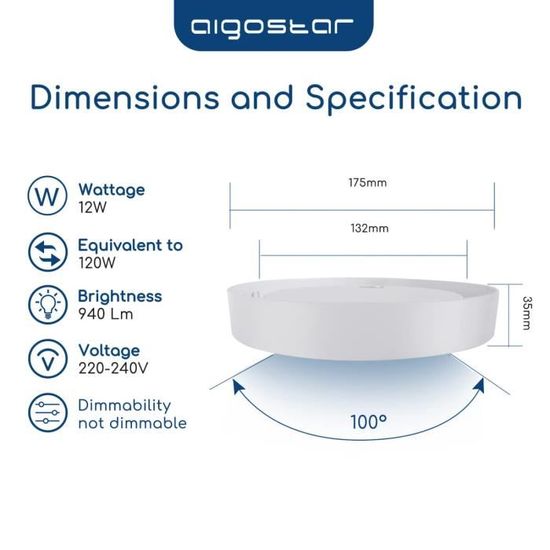 Plafonnier LED Rond Avec Puce Samsung 12W 120LM / W Couleur Blanche 3000k Ip54 82951035 Plafonnier A Pile Led Plafonnier LED, Blanc-chrome, LED/12W éclairage Plafond Blanc Froid 6000K Le plafonnier LED circulaire de 169 mm de diamètre et de 40 mm d’épaisseur offre des solutions pour les bureaux, les usines, les supermarchés, les magasins et l’utilisation résidentielle Plafonnier LED rond chromé 169mm 12w 930lm 30., 000h. Plafonnier LED Lampe Plafond 12W 1080LM Blanc Froid Lampe de Plafond... Hauteur du produit : 6 cm., Longueur : 50 cm , Largeur : 12 cm , Hauteur : 6 cm Pays d'origine : France.