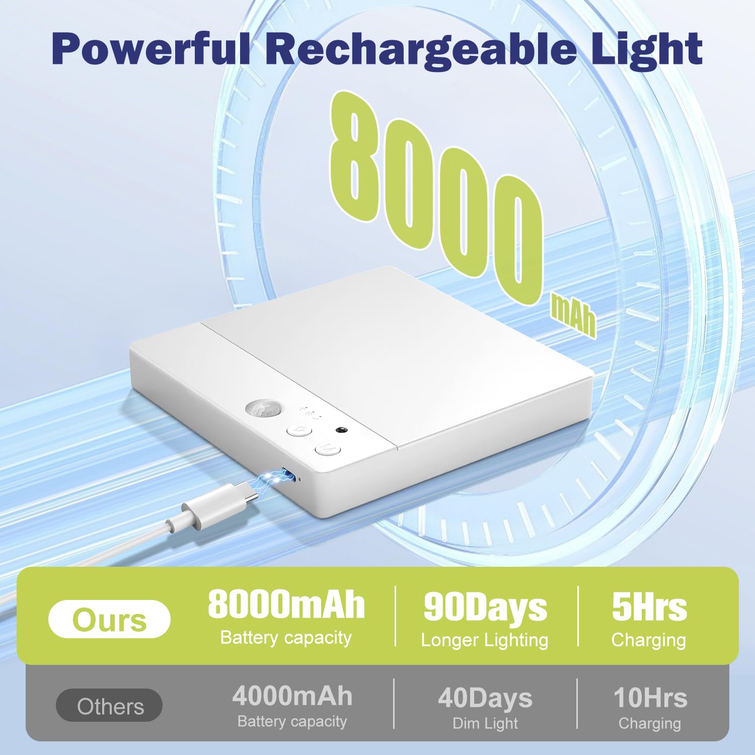 【Fonctionne sur batterie et rechargeable par USB】 Aucun câblage électrique requis, l'installation devient sans effort, vous permettant de placer la lampe à détecteur de mouvement alimentée par batterie n'importe où dans votre pièce sans restrictions, idéale pour les salles de location ou les zones sans prises de courant. Toowell Plafonnier LED Rechargeable Avec Détecteur de Mouvement C'est parfait pour les situations où la lumière du détecteur de mouvement est placée dans des endroits difficiles d'accès ou pour ceux qui préfèrent la commodité d'une télécommande. éclairage Automatique Couloir HONWELL RF Plafonnier LED à Détecteur De Mouvement Sans Fil Lumière Alimentée Par Batterie Avec éclairage Automatique Salle Bain Couloir Mode lampe normale : désactivez le capteur de mouvement et la lampe s'allume/s'éteint par interrupteur Les piles rechargeables vous permettent d'économiser de l'argent et d'éviter d'avoir constamment à acheter de nouvelles piles. Lampe de Bureau LED Sans Fil avec Detecteur Mouvement Rechargeable USB... 【Installation facile et large application】 Outre l'installation sans fil pratique, le vissage est également rapide et facile sans avoir besoin de l'aide d'un professionnel. ③ Mode marche : dans ce mode, vous pouvez désactiver le capteur de mouvement et utiliser la lampe comme une lumière normale. Installation sans fil sans perçage : installez facilement la lampe de douche magnétique au plafond sans avoir besoin de percer ou de vis. Les aimants à l'arrière de la lampe et la plaque métallique incluse permettent une fixation et un retrait faciles pour le chargement ① Mode Auto1 : la lumière activée par le mouvement s'allume lorsque vous êtes à moins de 2,7 à 5 m de la lampe et qu'il n'y a pas de lumière du jour, et s'éteint automatiquement 20 secondes après qu'aucun mouvement n'est détecté. 【Détecteur de mouvement réglable】 3 modes de fonctionnement sont disponibles ! 【Bouton poussoir et télécommande】 grâce aux commandes à bouton-poussoir directement sur la lampe elle-même, le réglage des paramètres et la commutation entre les modes deviennent sans effort, offrant un accès rapide aux paramètres d'éclairage sans appareils supplémentaires. Description du produit Mode de détection nocturne La fonction mémoire permet à la lumière de mémoriser le dernier réglage de luminosité ou le dernier mode d'éclairage utilisé avant de s'éteindre, de sorte que vous n'avez pas besoin de réinitialiser la luminosité ou le mode à chaque fois que vous utilisez la lampe.