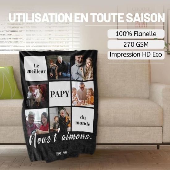 💗【Parfait pour tous les moments spéciaux】Que ce soit pour un anniversaire, un anniversaire de mariage, la Saint-Valentin, la fête des grands-mères, la fête des grands-pères, la fête des mères, la fête des pères, Noël, Thanksgiving ou tout autre moment précieux, ce plaid est un cadeau attentionné pour exprimer amour et gratitude à votre grand-père. KAAYEE Cadeaux Noël Papy, Plaid Couverture Polaire Idee Cadeau Anniversaire Grand Pere, Cadeau Papi Noel Original, Cadeau Fete des Grand Pere. 4,4 sur 5... 💯【Qualité garantie】Fabriqué en 100 % flanelle, léger, respirant, doux et agréable sur la peau, résistant au boulochage et sans perte de poils. 💎 Un cadeau qui fait la différence Chaque geste devient plus chaleureux, chaque fête plus mémorable. Plaid Cadeau Grand-père Cadeau Papy Noel, Plaid Couverture Polaire - Cadeau Pour Papy, Cadeau Anniversaire Papi, Cadeau Grand Pere Noel, Cadeau Fete Des Peres, Cadeaux De Noël Pour Papy Papi Grand Pere Plaid Personnalisé Son design polyvalent s’adapte à tous les styles de maison, ajoutant charme et gaieté au quotidien, parfait pour les personnes adorables. 🎁 Cadeau unique & plein d’émotion Offrez plus qu’un simple présent : un messager de tendresse et de chaleur. Un cadeau simple, mais porteur d’une signification exceptionnelle. Astuce : le plaid est livré plié et sous vide ; si des plis apparaissent, laver puis repasser à basse température pour retrouver son moelleux. Éviter l’eau de javel, les brosses dures et le sèche-linge haute température pour prolonger sa durée de vie. 🎉 Parfait pour toutes les occasions Anniversaire, mariage, Saint-Valentin, Noël, fête des mères, fête des pères ou Thanksgiving – exprimez vos vœux et votre gratitude à chaque moment important. 🎁【La rencontre chaleureuse du paresseux et du plaid】Plaid en flanelle douce et agréable au toucher, accompagné d’un paresseux endormi adorable et de textes amusants. Un petit cadeau pour un papi en or, un grand-père bienveillant, généreux, sage, complice, attention, drôle… Cette couverture sera idéale pour le réchauffer sur son canapé, sa chaise lors de ces sorties de pêche ou comme couvre-lit. Ce sera un petit cadeau original pour lui dire que vous l’aimez 💖 Détails pensés avec soin Du design élégant aux moindres détails, tout est travaillé pour rendre votre cadeau spécial et inoubliable. N’hésitez pas à suivre nos nouveautés et à nous contacter en cas de besoin ! Top 20 des cadeaux d'anniversaire pour grand-père