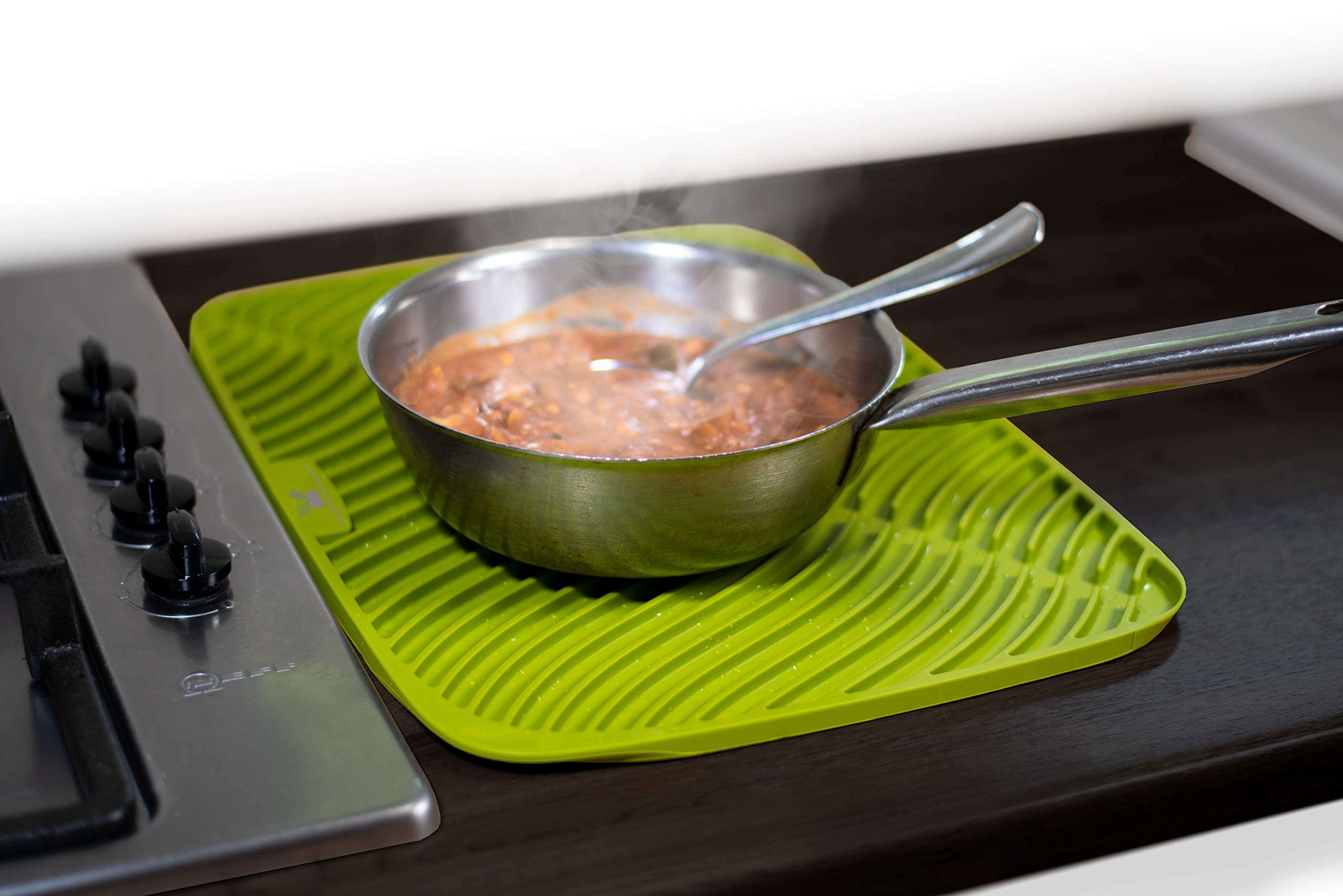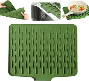 Le bord périphérique aide à minimiser les fuites d'eau. Kerafactum Tapis D égouttement Silicone Antidérapant Résistant À... Il se nettoie simplement en le rinçant ou en l'essuyant avec un chiffon humide. Caractéristiques du produit : Matériel: silicone , Couleur : vert., Dimensions : 40 x 32 cm., Contenu : 1 pièce. Tapis Déviation Eau Grand Tapis D'égouttoir En Silicone Pour Plan De Travail Et évier, Tapis Antidérapant Et Dessous De Plat Résistant à La Chaleur (vert Tapis Silicone Vert 40x32cm Matériau durable et entretien facile : fabriqué en silicone flexible, ce tapis d'égouttement est durable et facile d'entretien. Surface antidérapante et protectrice : empêche la vaisselle de glisser et protège votre plan de travail des rayures et de l'humidité. Il fournit une couche de protection pour votre plan de travail. Il est donc peu encombrant dans les tiroirs ou les armoires ou peut être suspendu. Ustensile de cuisine pratique : ce tapis antidérapant offre un support pratique et protecteur pour diverses activités de cuisine. Gain de place grâce à la flexibilité : le tapis en silicone flexible peut être plié à plat après utilisation et rangé dans les tiroirs ou les armoires pour économiser de l'espace. Séchage efficace et circulation de l'air : le tapis égouttoir dispose d'une surface texturée et d'un design à rainures surélevées qui évacuent l'eau et assurent une bonne circulation de l'air. Tapis d'égouttement pour machine à café, 60 x 40 cm, tapis d... Facile à nettoyer et à entretenir : le tapis est facile à rincer ou à essuyer avec un chiffon humide. Il peut être utilisé comme tapis d'égouttement, dessous de verre ou support. AhhaLife Protection contre les éclaboussures d'évier de cuisine en