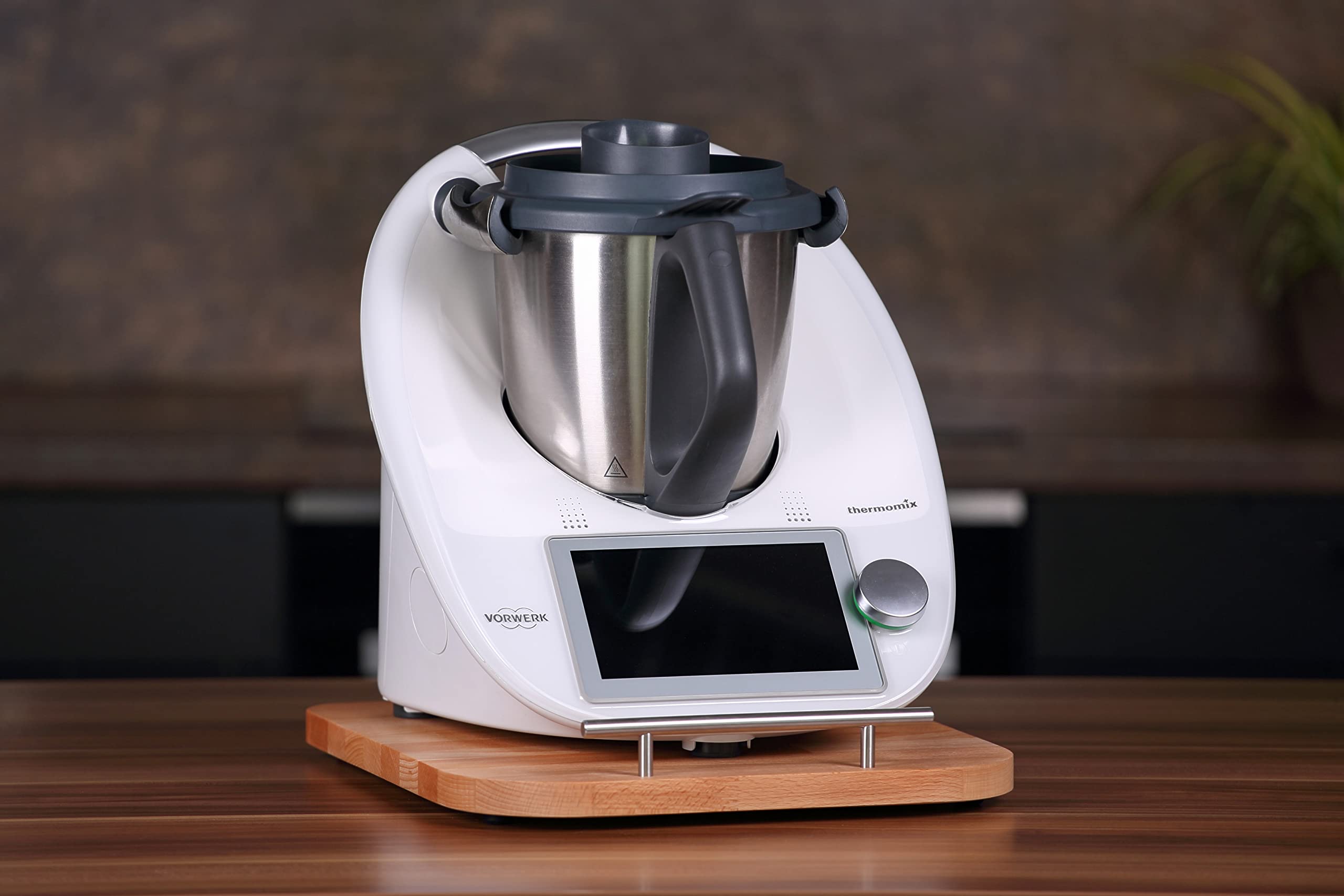 Facilite énormément l'utilisation quotidienne et le nettoyage de votre appareil. Support résistant aux rochers lors de la cuisson et de la pétrissage. Verre Trempé Thermomix Tm7 Planche Coulissante Bambou Pour Thermomix TM7 - Accessoire Planche Roulettes Thermomix Le matériau en caoutchouc souple garantit un déplacement sans rayures ni bruit, de sorte que votre précieux plan de travail de cuisine en granit, marbre ou bois reste impeccable et protégé. Planche coulissante pour Thermomix en bambou écologique de Cette planche coulissante en bambou est vraiment l'accessoire qu'il vous faut pour votre TM7. 🌿 Fini les soucis pour déplacer votre robot dans la cuisine - avec ses patins en téflon, ça glisse tout seul sur le plan de travail L'ustensile de cuisine indispensable et le cadeau parfait. Dès que vous retirez la face avant, les deux pieds en caoutchouc antidérapants robustes assurent une stabilité absolue. C'est plus que des accessoires : c'est un ustensile intelligent qui fait passer votre expérience de cuisine à un nouveau niveau. Parfait pour le sortir d'un coin ou nettoyer la surface de travail, une combinaison ingénieuse de flexibilité et de stabilité. Votre TM7 est ainsi aussi stable et sûr que directement sur le plan de travail, même lors du pétrissage ou du mélange au plus haut niveau. Système intelligent « lift and roll » Oubliez le levage et la traction fastidieux de votre précieux Thermomix.