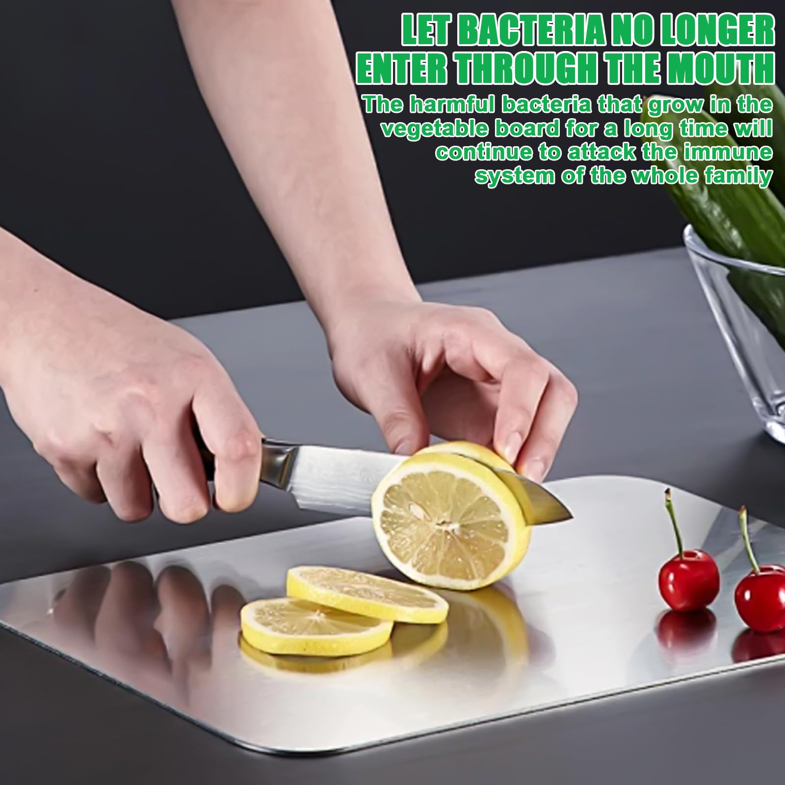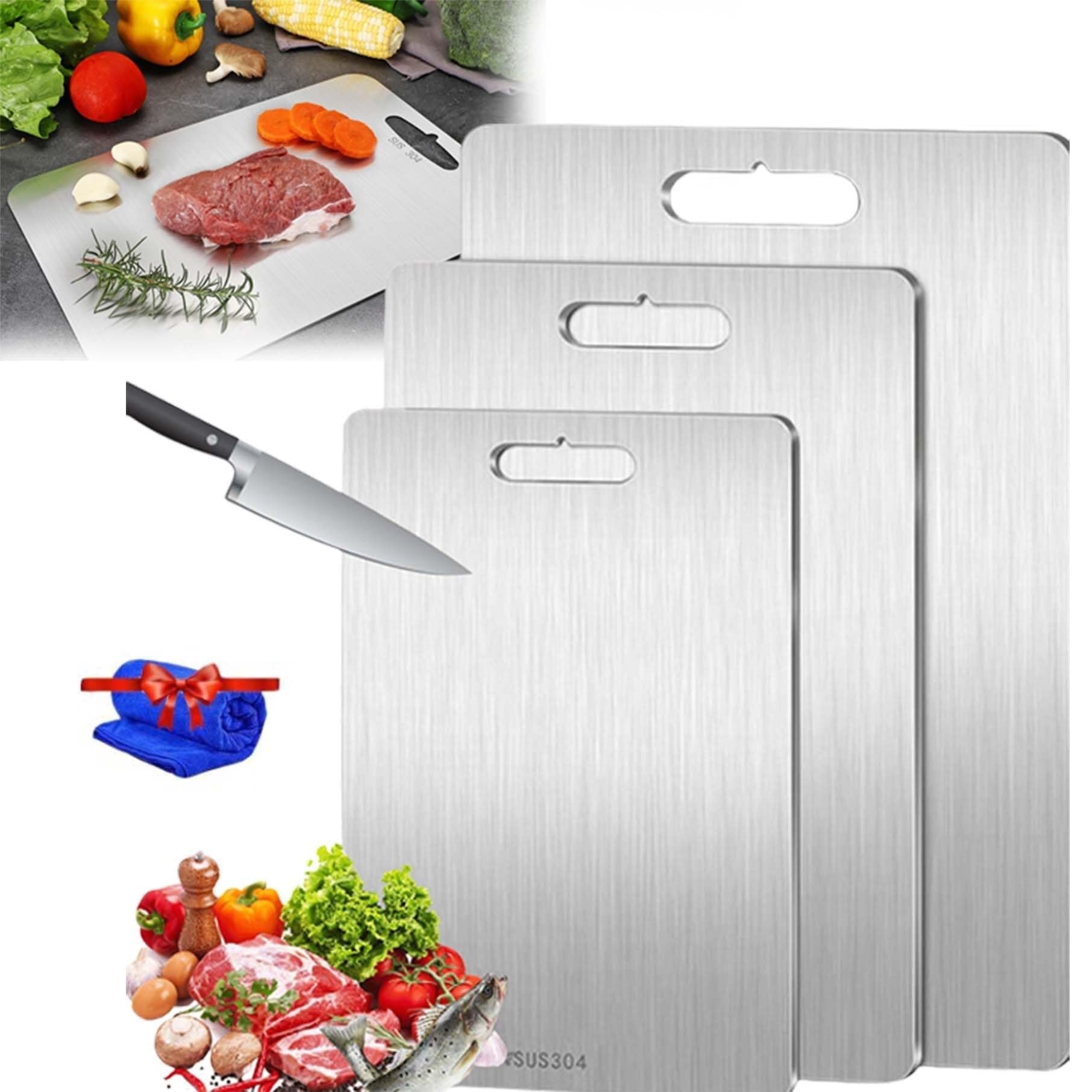 Titanium Cutting Board Acier Inoxydable 304, Planche de à Decouper Elles sont complètement exemptes de BPA et de produits chimiques nocifs, sans particules plastiques. Nettoyage Facile Accroche Murale Lot De 3 Planche à Découper En Titane,316 Planche De à Decouper En Acier Inoxydable, Titanium Cutting Board Double Face Pour Fruits, Viande, Fromage Et Légumes Planche à Découper Titane 🥑𝗗𝗘𝗦𝗜𝗚𝗡 𝗗𝗢𝗨𝗕𝗟𝗘 𝗙𝗔𝗖𝗘:Comparées aux planches à découper en plastique et en bois traditionnelles, les planches NATNAV privilégient la sécurité. Matériaux de Haute Qualité: Notre planche a decouper est fabriquée en acier inoxydable de haute qualité, solide et durable, difficile à corroder et à rouiller, et peut être réutilisée, est longue durée de vie, de sorte quelle peut facilement résister aux hachages et aux coupes difficiles Ces planches à découper en titane S316 sont vraiment révolutionnaires ! Le lot de 2 comprend une grande (34x23cm) et une petite (25x15cm) - parfait pour... 😀𝙋𝙊𝙐𝙍 𝙑𝙊𝙎 𝘽𝙀𝙎𝙊𝙄𝙉𝙎 𝙌𝙐𝙊𝙏𝙄𝘿𝙄𝙀𝙉𝙎:Vous recevrez une planche à découper de 34 x 23 cm + 25 x 15 cm, qui est non seulement le choix idéal pour la cuisine, mais aussi parfaite pour le camping, les fêtes et diverses occasions. Le design comprend un côté pour couper des fruits et des légumes et un autre côté pour couper de la viande, évitant ainsi efficacement la contamination croisée. Si vous avez des questions, n'hésitez pas à nous contacter, et nous vous répondrons dans les 24 heures. 🍽️𝙋𝙇𝘼𝙉𝘾𝙃𝘼 𝙀𝙉 𝙏𝙄𝙏𝘼𝙉𝙀:La planche à découper en titane NATNAV dispose d'une surface en titane optimisée qui offre une force et une durabilité incomparables. 🔪𝙋𝙍𝙊𝙏É𝙂𝙀𝙕 𝙑𝙊𝙎 𝘾𝙊𝙐𝙏𝙀𝘼𝙐𝙓 𝙀𝙏 𝙂𝘼𝙍𝘿𝙀𝙕-𝙇𝙀𝙎 𝘼𝙁𝙁Û𝙏É𝙎:Nos planches à découper en titane sont conçues pour protéger vos couteaux pendant l'utilisation, empêchant l'émoussement des lames par rapport à la pierre, au verre ou à l'acier. Planche à Découper en Titane