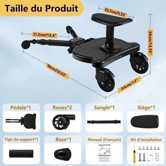 Planche à Roulettes Poussette - Planche à Roulettes pour Poussette Universelle avec Siège Amovible, Noir ; i. Livré entre le 16/10 et le 21/10. détails. Vendu et... La planche de poussette pratique vous permet d'avoir plus d'énergie pour accompagner votre enfant et assurer un voyage heureux. Largeur du produit : 33,2 cm. En attendant, lorsqu'il n'est pas utilisé, il peut également être accroché avec une corde sur la poignée de la poussette pour faciliter les voyages. Hauteur du produit : 34,5 cm. Description : Pour les familles avec deux enfants, cette planche de poussette est une bonne solution pour voyager ensemble avec les enfants. Facile à déplacer : les roues en polyuréthane hautement élastiques qui peuvent pivoter à 360 ° ont une bonne absorption des chocs et une bonne résistance à l'usure, de sorte que la planche de poussette se déplace en douceur et de manière flexible, de sorte que votre enfant jouit d'une expérience de conduite confortable. Planche Poussette Universelle Loohacp Adaptateur De Pédale Dimensions du colis : 36 x 35 x 10 cm / 14,17 x 13,78 x 3,94 pouces Poids brut : 2,25 kg., Poids net : 1,85 kg. Coins ronds : les coins arrondis et lisses peuvent protéger efficacement les enfants des rayures et améliorer la sécurité d'utilisation. Planche De Poussette Adhésive Planche Universelle Pour Poussette Avec Siège Amovible, Convient à La Poussette Triple 3 Places Détails : Ruban autocollant : le ruban adhésif doux et robuste peut connecter différents modèles de poussettes de manière flexible pour une utilisation. Utilisation : Il est compatible avec la plupart des poussettes, y compris les poussettes légères à trois roues et les poussettes parapluies, de sorte que vous pouvez facilement emmener votre enfant pour les promenades, les jeux, le shopping et plus encore. Le design réglable en longueur et en hauteur ainsi que diverses applications pratiques vous offrent un grand confort. Planche de Poussette Universelle (Gebraucht) in Founex für CHF 50 – mit... 1 manuel d'utilisation en anglais. Dimensions du siège : 10,8 x 22,5 cm / 4,25 x 8,86 pouces Longueur du produit : 54-58,5 cm. Le motif en forme de diamant sur la planche augmente la friction et empêche les enfants de glisser lorsqu'ils sont debout. Les enfants peuvent se tenir debout ou s'asseoir pendant le voyage, ce qui leur offre un environnement de conduite confortable et vous offre également un grand confort. Matériau : PP, PU, EVA Charge maximale : 25 kg. Design couvert : la planche en forme d'ours est plus appréciée des enfants.