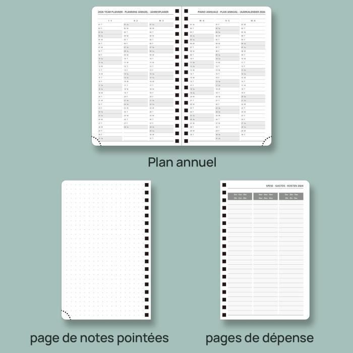 Qu'il s'agisse de planifier des réunions, de noter des idées ou de garder une trace des dates importantes, cet agenda est fait pour vous. Doté d'une couverture rigide en tissu imprimé marbre charbon, ornée de détails dorés, il est à la fois élégant et pratique. Son format compact (11 x 15 cm) se glisse facilement dans votre sac à main, ce qui le rend idéal pour la planification en déplacement. S'étendant de janvier à décembre, il est rempli de pages aux motifs magnifiques qui égayeront vos séances de planification. Trois poches pratiques permettent de tout garder en sécurité, tandis que la fermeture élastique garantit le maintien en place du contenu. PLANIFICATION DU QUOTIDIEN - Planifiez votre semaine d'un côté et prenez des notes de l'autre. Cet agenda vous permet de rester maître de la situation grâce à... Sa couverture rigide en tissu imprimé marbre charbon lui confére un look professionnel, tandis que la fermeture élastique permet de le ranger en toute sécurité dans votre sac ou sur votre bureau. Avec ce charmant agenda Busy B, l'année 2026 sera la plus organisée de votre vie. Gardez le contrôle de votre emploi du temps grâce à cet élégant agenda A6 de Busy B. Agenda 2026 Semainier Busy B - Planificateur 2025 - Marbre Bleu - Agenda Semainier A6 Compact Avec Listes De Tâches à Agenda Professionnel étudiant L'agenda est imprimé en anglais sur du papier blanc provenant de sources durables. Avec des accents élégants et professionnels, l'agenda hebdomadaire... DESIGN ÉLÉGANT - Rehaussez vos essentiels de bureau avec ce bel agenda. UTILISATIONS POLYVALENTES - Plus qu'un simple agenda académique, ce planificateur polyvalent s'étend de janvier à décembre 2026., Idéal pour les professionnels, les étudiants ou toute personne souhaitant rester organisée tout au long de l'année. PLANIFICATION DU QUOTIDIEN - Planifiez votre semaine d'un côté et prenez des notes de l'autre. Le ruban marque-page et la boucle de stylo vous permettent d'être toujours prêt pour planifier votre prochaine action. Busy B Agenda semainier 2026 format A6 avec listes de choses Les trois poches sont idéales pour ranger les documents importants. Les listes détachables au dos sont idéales pour faire les courses ou gérer les tâches. vous permet d'avoir une vision plus large de vos engagements. Cet agenda Busy B est rempli de détails ingénieux pour vous aider à rester organisé.
