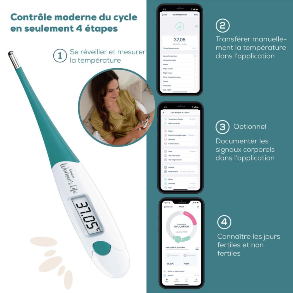 EVIAL Thermomètre numérique basal pour le contrôle du cycle 1 pc(s... Le thermomètre basal BBT est un appareil très performant qui est capable de mesurer la température avec une précision optimale allant jusqu'à 0,01 °C. C'est donc un appareil parfait pour les femmes qui souhaitent être à l'affût du moindre changement sur leur corps au cours de leur cycle menstruel. Il est le meilleur allié pour celles qui cherchent à tomber enceinte plus... Thermomètre Médical Le Plus Fiable Thermomètre Basal Digital - Surveillez Cycle - Planification Naturelle De La Fertilité Et De La Thermometer Walmart Thermomètre basal connecté My Sense de Cyclotest| Fertilité Info