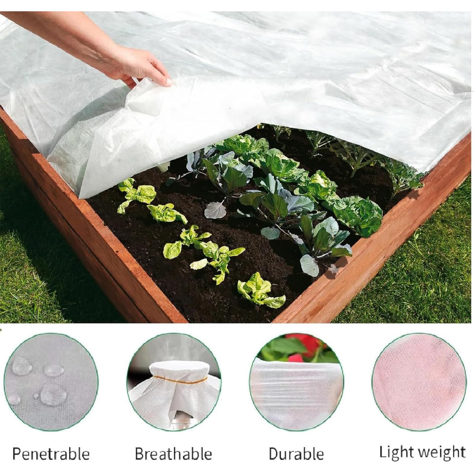 KINGLAKE 1.6X5m Voile Hivernage Exterieur - 30g/m² Épaissi d'hivernage Respirabilité:Voile d'hivernage est très respirant, permettant à la pluie et au soleil d'atteindre pleinement les plantes et le sol. Protection Hivernale Jardin Potager Voile Hivernage Plante Exterieur,3x5m Épaissi D'hivernage Protection Plantes Contre Gel Disponible en tailles spéciales, il convient à de nombreuses applications, telles que les abris de jardin, les cabanes dans les arbres, les parasols, les couvertures flottantes et la protection contre le gel Voile d'hivernage NORTENE - Gamm vert Lot de 2 Voile Hivernage Plante, Housse d'hivernage Plante, 140 x 200cm... Il prévient également les dégâts causés par les oiseaux Sa conception à mailles fines permet aux plantes d'absorber pleinement la lumière du soleil tout en laissant passer l'air et une faible quantité d'humidité, leur permettant ainsi de respirer librement Prolonge la Saison de Croissance:L'utilisation d'un voile d'hivernage pour plantes permet aux plantes de germer plus tôt au printemps et de poursuivre leur croissance jusqu'en automne. Dimensions:Voile d'hivernage pour plantes mesure 3 x 5 mètres et offre une protection optimale aux plantes. Voile D'hivernage pour Plantes:Ce voile respirant résiste au gel et à la formation de glace, garde les plantes au chaud et protège les légumes et les fleurs des gelées nocturnes. La bâche idéale pour les plantes et les arbres 1., Elle protège vos plantes des dommages causés par la grêle, le gel, le vent et la neige., 2., Elle éloigne les oiseaux, les insectes et autres animaux de vos plantes.