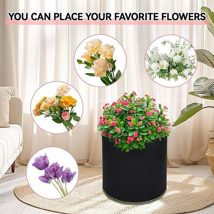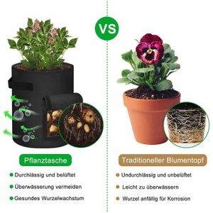 Nos sacs de croissance sont réutilisables, pliables et faciles à ranger. Organisation des plantes multicolore avec étiquettes : le kit contient 4 étiquettes de plantes différentes en blanc, rouge, rose et vert. Sacs de plantation respirants pour des racines saines : nos sacs de plantation en tissu non tissé favorisent l'aération des racines, évitent l'engorgement et préviennent la pourriture. Chaque pot en tissu non tissé respirant favorise une formation saine des racines, empêche l'eau stagnante et réduit le risque de moisissure. Lot de 4 pots de plantation en tissu épais avec poignée Ils offrent l'environnement parfait pour cultiver des tomates, des herbes, des fraises ou des fleurs - Convient également comme sacs de plantation de pommes de terre. Contenu de l'emballage : 4 sacs de plantation + 4 étiquettes de plantes en PVC colorées Poids : environ 180 g (kit total) Couleur : noir (sac), blanc/rouge/rose/vert (étiquettes) Volume : 3 gallons par sac Résistance à l'eau : respirant et régulateur d'humidité Spécifications: Ce lot de 4 sacs de plantation avec étiquettes colorées pour plantes offre la base parfaite pour la culture sur le balcon, la terrasse ou dans le jardin. Sac de plantation - Intirilife - Lot de 2 - 11 litres - 25 x 22 cm - Tissu non-tissé... Taille optimale et coffret cadeau pour les amateurs de jardin : avec un volume de 25 x 22 cm, nos pots en tissu sont parfaits pour la culture de différentes plantes. Matériau : tissu non tissé (pot en tissu) (sacs), PVC (étiquettes) Taille du produit : sacs de plantation - 25 × 22 cm (environ 3 gallons), étiquettes pour plantes : 7 × 5 cm. Idéal pour étiqueter et distinguer vos plantes – un véritable avantage pour tous ceux qui apprécient les sacs de plantes structurés et la vue d'ensemble dans le jardin. Sac De Plantation En Plastique CSPARKV Sacs De Plantation, Lot De 5 Sac à Plantes 11L, Sacs De Culture En Non Tissé Pots Avec Sac De Plantation En Tissu Les sacs de plantation respirants empêchent l'excès d'arrosage et favorisent la formation saine de racines pour vos plantes succulentes. - Convient pour cultiver des pommes de terre, des carottes, des tomates, des fleurs et des légumes, des plantes, et plus de sacs de plantes non tissés Convient parfaitement aux sacs de plantation urbains.