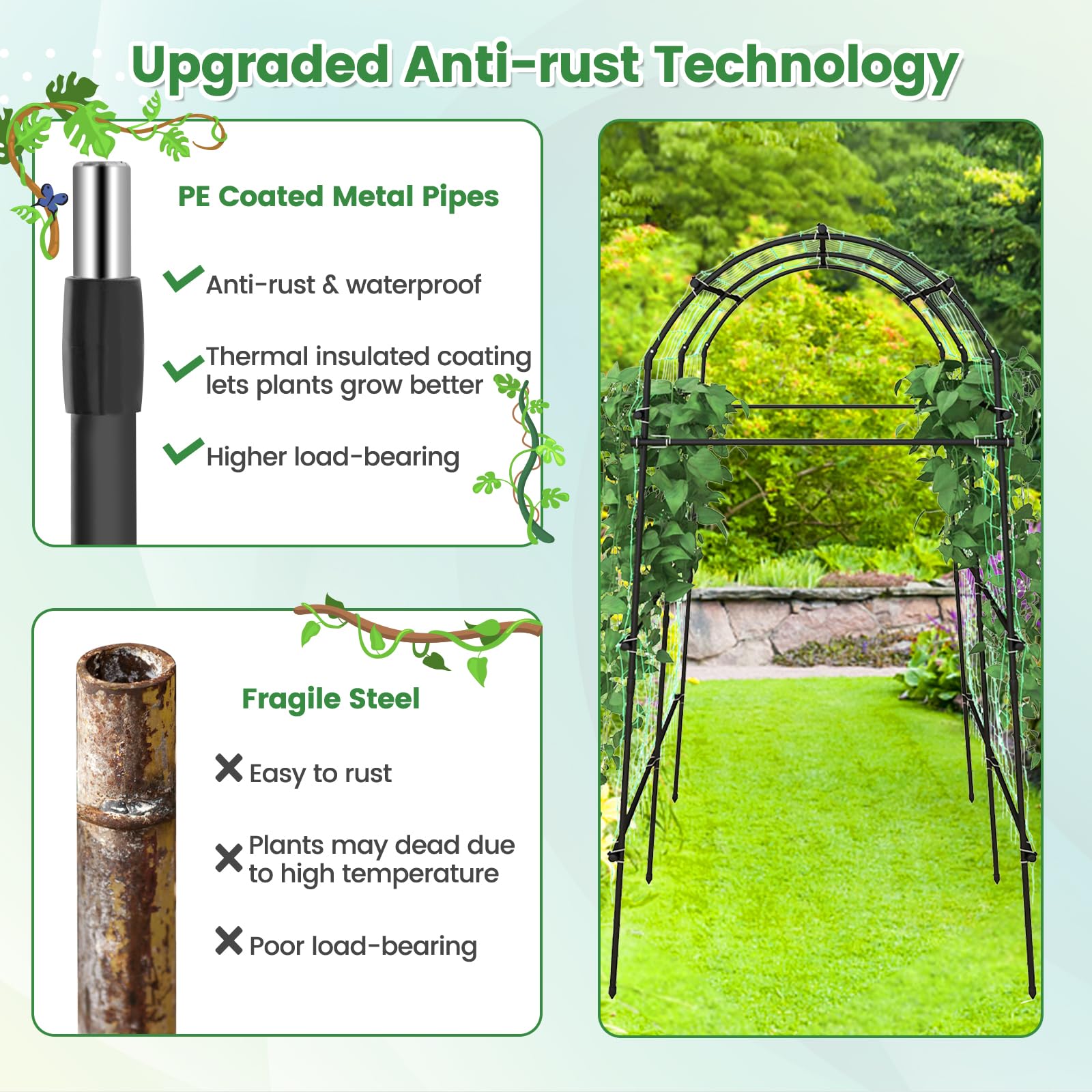 Neinkie Treillis pour plantes en pot, Mini treillis de jardin pour... L'installation est simple, ne nécessite pas d'outils compliqués, une seule personne peut la terminer facilement, facile à utiliser et à ranger. MATÉRIAU DURABLE : Le support de plantation est fabriqué en tube d'acier recouvert de plastique PE résistant aux températures élevées et à la corrosion et en filet PP. Que ce soit à l'intérieur ou à l'extérieur, dans un jardin ou un patio, il peut jouer un rôle de soutien. Durable, il ne rouille pas et ne pourrit pas. Description du produit Nos supports de culture sont réputés pour leur structure stable, leurs matériaux durables, leur flexibilité, leurs multiples applications et leur facilité d'installation. Tirez le meilleur parti de l'espace pour que les plantes s'épanouissent. support antirouille pour plantes grimpantes - Treillis pour glycine et vignes - Support extérieur pour rosiers AJUSTEMENT FLEXIBLE : Le treillis pour plantes grimpantes est doté d'une conception unique permettant d'ajuster l'angle d'inclinaison en fonction des besoins de croissance de la plante. Matériau résistant aux températures élevées et à la corrosion, durable et fiable. Installation Facile Sans Outils HOMASIS Treillis Pour Plantes Grimpantes, Support Grimpant Avec Tube Support Grimpant Acier Plastifié Filet Pp Caractéristiques : Stabilise et soutient la croissance des plantes et favorise une croissance saine. Le réglage flexible de l'angle d'inclinaison assure les bonnes conditions de croissance pour les plantes. Le design classique assure une croissance saine des plantes, et le tube en acier recouvert de plastique PE et le filet en PP garantissent une stabilité et une fiabilité à long terme. Mesurant 146 x 186 cm (L x H), il offre un espace généreux pour plusieurs plantes à grimper et prospérer, en faisant un choix idéal pour maximiser l'espace... Assure que les plantes reçoivent suffisamment de lumière et d'air pour favoriser une croissance vigoureuse. Utilisez des gants lors de la manipulation. Le support est facile à démonter, peu encombrant et pratique à ranger. APPLICATIONS MULTIPLES : Convient à une variété de plantes grimpantes, telles que les concombres, les pois, les raisins, etc. Support polyvalent pour les plantes grimpantes, utilisable à l'intérieur comme à l'extérieur Conception d'installation simple, facile à utiliser par une seule personne Facile à démonter et à ranger, il permet d'économiser de l'espace et de l'utiliser au mieux. INSTALLATION FACILE : La conception à connecteurs multiples facilite l'installation, sans nécessiter d'outils compliqués.