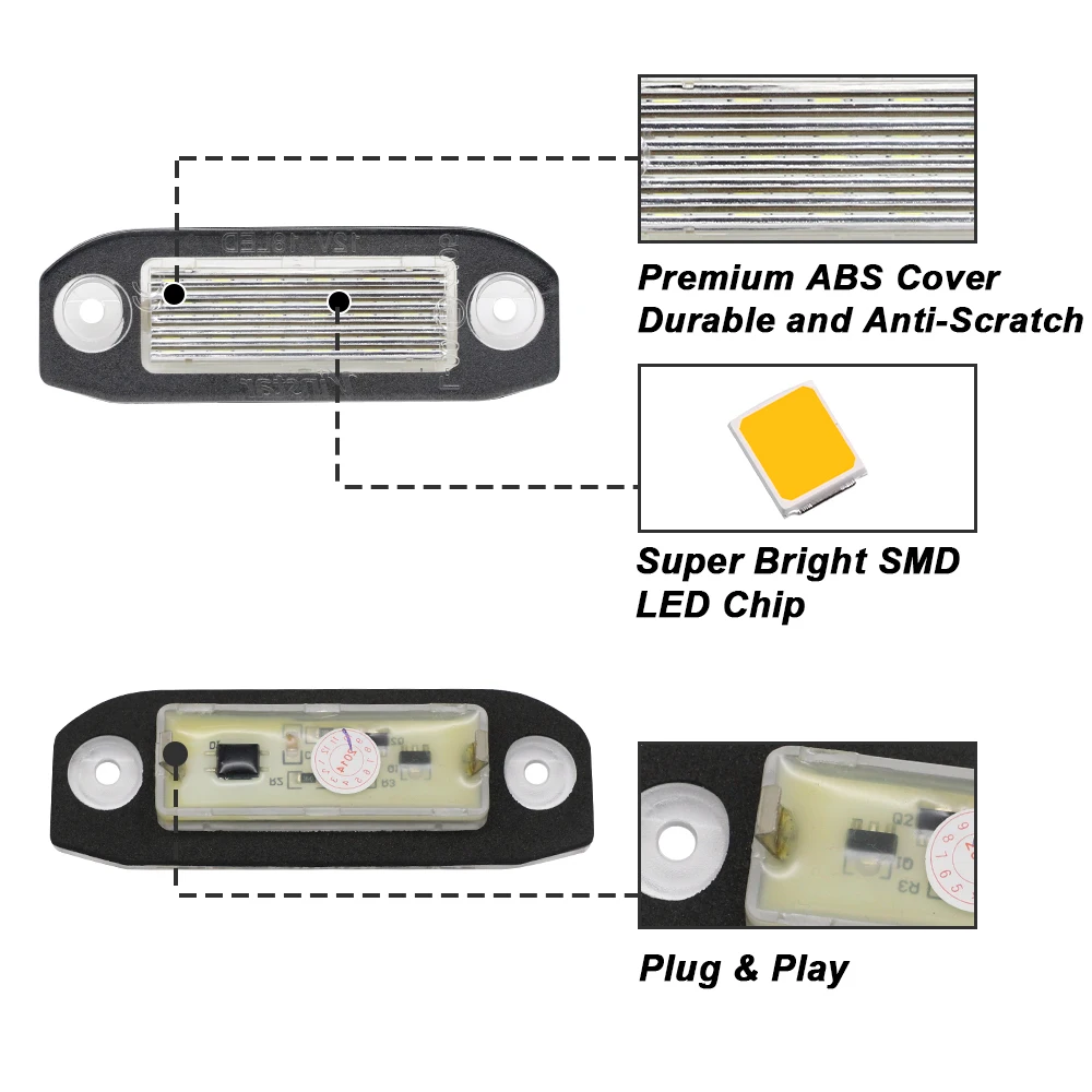 LED SMD 18 Puces Ampoules LED Plaque Volvo Ampoules LED Plaque Immatriculation Volvo - Blanc Froid Canbus Sans Erreur - Lot De 2 Remplacement Ampoules OEM Feux Plaque Immatriculation LED Pack Leds plaque d'immatriculation pour Volvo C30 Lot de 2 éclairages de plaque d'immatriculation pour Volvo S80, XC90, S40, V60, XC60, S60, C70, V50, 2 pièces LED pour plaque d'immatriculation Canbus sans... Avec une durée de vie allant jusqu'à 30 000 heures, il minimise l'entretien et garantit une visibilité optimale. [Compatibilité CAN-BUS] Nos Éclairage de plaque d'immatriculation communiquent parfaitement avec le système CAN-BUS (Controller Area Network) du véhicule. Cela élimine les problèmes de compatibilité et garantit un fonctionnement optimal avec une large gamme de modèles de véhicules, des plus anciens aux plus récents. DYNVEX 2 Pièces LED Éclairage plaque immatriculation pour Vol-vo C30 C70 S40 S60 S80 V50 V60 V70 XC60 XC70 XC90, [Can-bus sans erreur] Premium et durable 18 SMD Éclairage de plaque d'immatriculation [Installation facile] Grâce au système plug-and-play, l'installation est simple et rapide, sans perçage. Cette conception intuitive permet une installation rapide et facile, et ajoute instantanément un éclairage éclatant à votre véhicule sans endommager le boîtier d'origine. [Contenu et garantie] Le pack comprend 2 éclairages de plaque d'immatriculation LED SMD de haute qualité, couleur blanc froid. L'éclairage de plaque d'immatriculation est fabriqué en matériau de haute qualité, résistant aux chocs, aux rayures, durable, peut s'adapter à tous les...