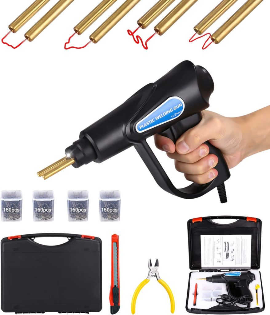 150W Soudage Plastique achine, 220V Souder Plastique achine, 2 en 1 Kit de Soudage Plastique... Chauffe rapide et sécurité maximale: Prêt en quelques secondes avec 70W de puissance ; protection contre la surchauffe pour préserver les surfaces plastiques ; la réparation est solide et durable – un kit reparation plastique fiable. Large compatibilité d’usage: Convient pour réparer pare-chocs, tableaux de bord, poignées, phares, radiateurs, éléments plastiques de véhicules ou objets du quotidien ; un excellent choix de kit soudage plastique pour un usage domestique et automobile. Soudage Plastique Pistolet Pistolet à Souder Plastique 100W - Kit Réparation Pare-chocs Et Pièces Plastiques Agrafeuse Pneumatique Pistolet Soudure Plastique Pare-chocs Facile à utiliser, sans formation nécessaire: Prêt à l’emploi pour les débutants comme pour les professionnels ; adapté à la soudure, à la fixation, à la réparation de trous, à la coupe thermique, etc. Large application : la machine à souder en plastique peut réparer, souder, renforcer la plupart des pièces en plastique fissurées et endommagées, y compris le pare-chocs de voiture, le tableau de bord, le support de lampe, l'anneau en plastique, le refroidisseur, les ailes, les ailes, les poignées, les phares, les bateaux, les poubelles... 800 agrafes en 4 types: Comprend 800 agrafes en acier inoxydable résistantes à la rouille ; 4 formes pour s’adapter aux fissures droites, courbes, en coin intérieur ou extérieur ; parfait pour toute opération de soudure plastique de précision. Soudeur Plastique Kit De Soudure Plastique 200W - 1000 Agrafes + 16 Tiges - Pour Réparer Pare-chocs, Phares... Kit Réparation Fer à Souder
