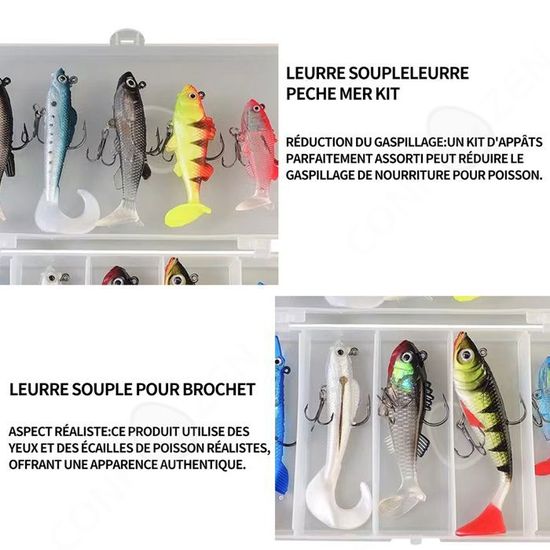 La taille du colis est de 10 x 8 cm et le poids total est de 43 g. Accessoire Pêche économique Réutilisable Leurres De Pêche Japonais En Plastique Souple – Haute Qualité Et Réalisme Leurre Souple Decathlon Caractéristiques : *Fabriqué avec des matériaux de haute qualité. Pratique et hygiénique : avec une grande quantité de 100 pièces, cet appât élimine le besoin de changer d'appâts à plusieurs reprises, ce qui rend votre expérience de pêche sans tracas * Nom du produit : appât flottant pour carpe artificiel. Contenu de l'emballage : Lot de 100 appâts flottants artificiels pour carpe. LEURRE DE PECHE,A--lot'appâts artificiels souples en Silicone pour la... Caractéristiques : Matériau : silicone souple. * Appât flottant en silicone, riche en saveur de cors, doux au toucher et bonne ténacité. Matériau en silicone : le faux appât souple est fabriqué en silicone, durable et durable. Ensemble de leurres souples - PASSIONOVA - 10cm - PVC - 10 pièces - Flottants réalistes - Sport *Hygienicit élimine le problème de changer les appâts à plusieurs reprises pour la pêche à Taiwan. Détails du colis : le lot comprend 100 appâts flottants artificiels pour carpe, chacun mesurant 1 cm de long.