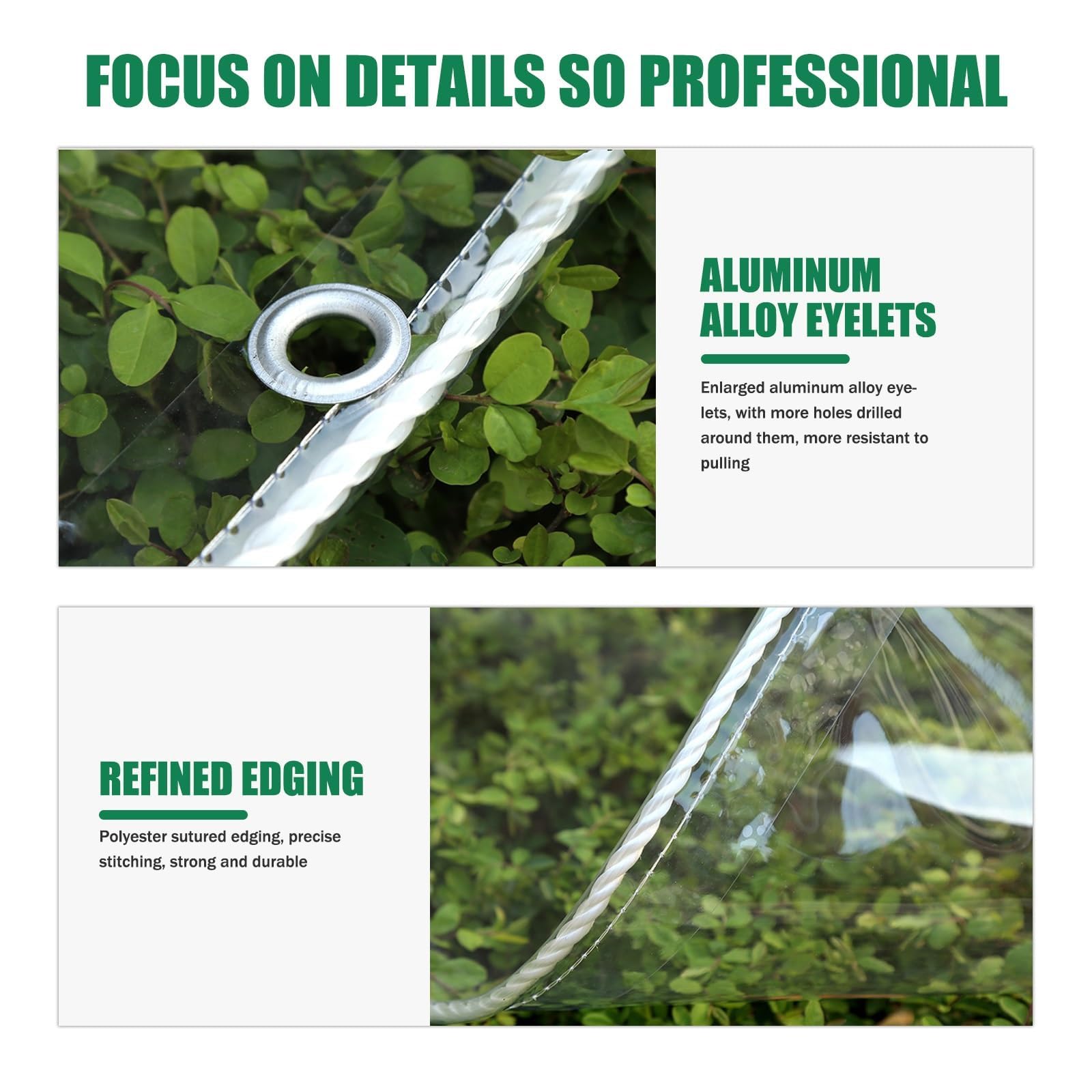 Polyvalence : nos bâches transparentes peuvent être utilisées non seulement pour protéger les plantes et les légumes dans les jardins et les serres, mais aussi comme isolant d'usine, tapis anti-humidité, housses de protection contre la poussière à la maison, housses de voiture et bien d'autres usages Bâche épaisse 0.3mm Bâche En Plastique Transparent, Bâche De Protection PE PVC, Grande Bâche Imperméable Protection Extérieure Bâche transparente imperméableCouleur : TransparentMatériau : PVCTaille : L x HForme du produit : rectangulaireDistance entre les œillets : environ 50 cm. Matériau durable de qualité supérieure : fabriquée en PVC de haute qualité de 15 mm d'épaisseur, cette bâche imperméable transparente offre une endurance robuste et une résistance aux conditions météorologiques défavorables En raison des coutures et des plis, les tailles indiquées varient légèrement de la taille réelle et peuvent varier de 3 à 5 cm par rapport à la valeur spécifiée., Contenu du paquet. Si vous avez des questions, s'il vous plaît contactez-nous par e-mail d'abord, nous allons certainement vous aider dans les 24 heures pour résoudre la bâche transparente étanche. PVC Bache de Transparente Arée Epaisse avec Oeillets Vinyle Bâche... Notes sur la taille. Poids du produit : 400g/㎡Épaisseur du produit : 0,3 mmIndice d'imperméabilité : 100%. Ne prend pas beaucoup de place : la bâche en plastique transparente peut être pliée et repliée à volonté, prenant très peu de place lorsqu'elle n'est pas utilisée, vous n'avez donc pas à vous soucier du rangement, et elle convient à une utilisation intérieure et extérieure SHUDONGDEN Bâche en Plastique Imperméable,Imperméable Résistant Et Transparent - Bâche Poly Vinyle Transparent 0.35Mm Bâche D'auvent Transparent pour Couvrir Le Soleil Et La Pluie,3x4m/9.8x13.1ft Caractéristiques du produit1., pour les balcons de jardin, les abris de voiture, les plantes grasses, les maisons pour animaux, les camions, etc. Options de haute qualité : pliage à volonté, blocage des UV et large choix de tailles différentes pour une utilisation intérieure et extérieure