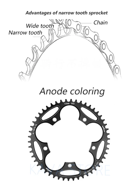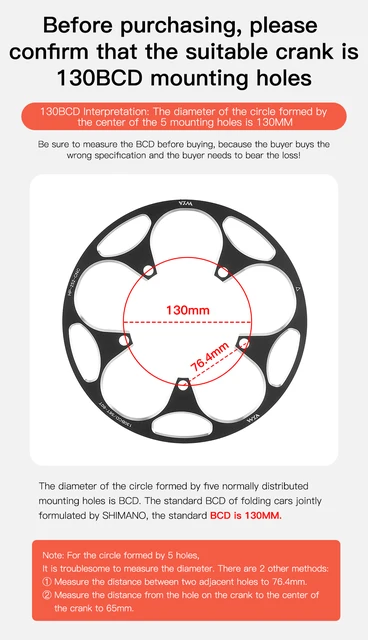 * Poids : 50T-54T : 105 g, 56T-60T : 125 g. Fdit plateau 56T Plateau de vélo BOLANY 130BCD 56T à disque unique à dent négative positive pour... Matériau fiable : fabriqué en matériau durable et pratique, assurant une utilisation durable et fiable. Caractéristiques : *Matériau : alliage d'aluminium. Pour Plateaux 50-54 Dents 56-60 Dents Protection De Plateau De Vélo 130BCD - Anneau De Protection Plateau 50T-54T Protection Alu *Remarque : pour le cercle formé de 5 trous, mesurer le diamètre est plus difficile, et il y a 2 autres méthodes : ① Mesurez la distance entre deux trous adjacents à 76,4 mm. Fabriqué en matériau de haute qualité, pratique à utiliser. * Définition 130BCD : le diamètre du cercle formé par le centre des cinq trous de montage est de 130 mm (comme sur les photos). Protège-chaîne pour vélo de route : conçus pour le cyclisme de route avec 130BCD, offrant une protection aux pignons 50T-54T et 56T-60T. 【Sécurité améliorée】Doté d'une protection de chaîne de manivelle, ce protège-chaîne améliore considérablement la sécurité de conduite en arrêtant les accidents et les problèmes potentiels de chaîne. * Technologie avancée de teinture et d'impression, belles lignes, personnalité et goût, bonne résistance à l'usure. *Couleur : noir, rouge, bleu., * Spécifications : 130BCD. Matériau de haute qualité] : ce plateau de vélo est fabriqué en matériau PP durable de haute qualité, résistant à l'usure, empêche efficacement la chaîne... * Dans l'état traditionnel, une couche de protection de chaîne de manivelle est ajoutée pour améliorer considérablement la sécurité de conduite et éviter d'éventuels accidents. Caractéristiques : matériau : alliage d'aluminium ; couleur : noir, rouge, bleu ; nombre de dents approprié : 50T-54T, 56T-60T ; poids : 50T-54T : 105 g, 56T-60T : 125 g ; définition 130BCD : le diamètre du cercle formé par le centre des cinq trous de montage est de 130 mm. Plateau De Pédalier Pour Vélo De Route 54 T/56 Dents 130 Bcd - Dents Négatives Positives - Plateau Unique Pour Vélos De Route, Motocross, Vélos Pliants (noir 56 Dents