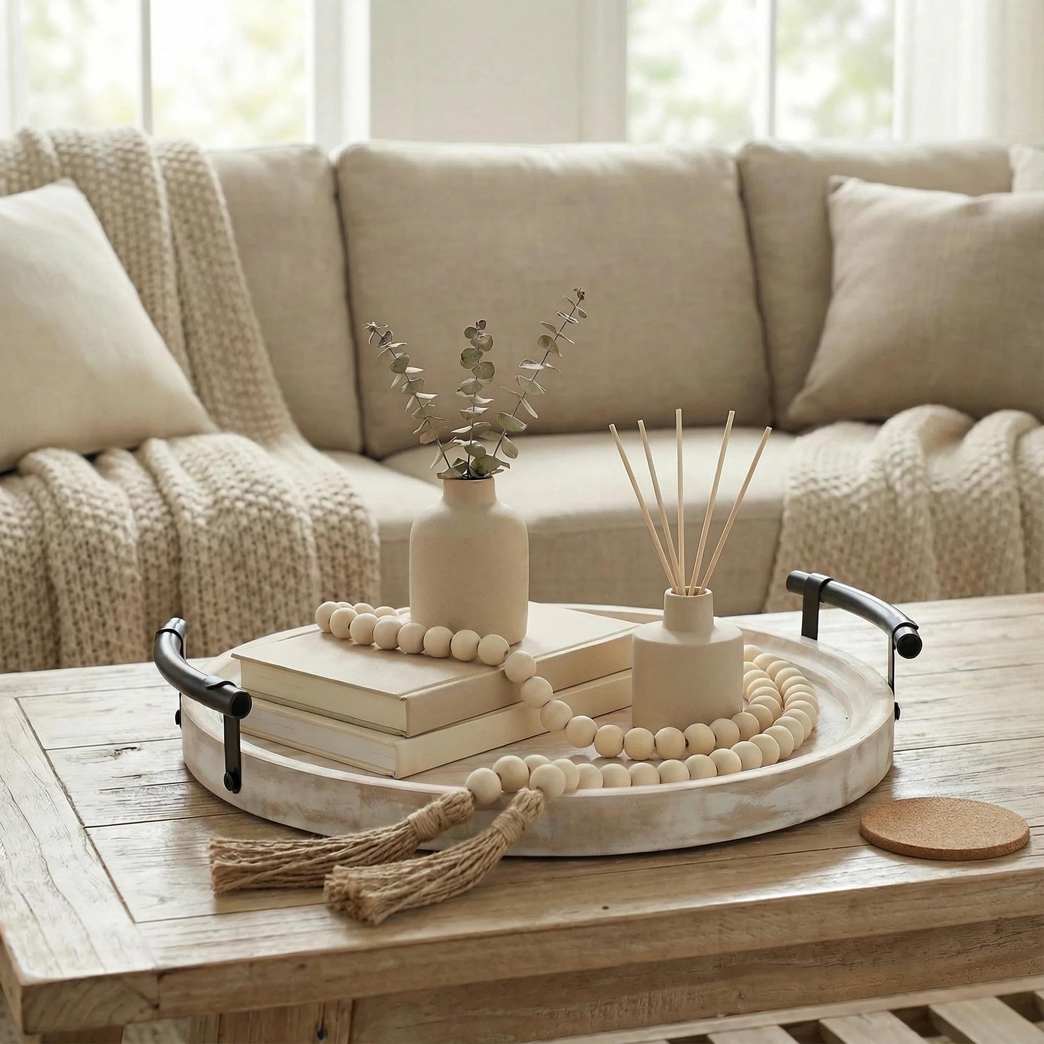 Set De Table Rond Osier Plateau Rond En Bois Avec Guirlande De Perles En Bois – Plateau Plateau Déco Salon Cuisine PANDURO Guirlande de perles en Bois - Naturel - Jeux - Jouets Découvrez notre vaste gamme de 1 pièce Plateau décoratif rond, pour la décoration de la ison - Plateau en perles de bois rron - Plateau décoratif rond... Et il est combiné avec une chaîne de perles en bois blanc qui lui donnent une touche bohème. Utilisation polyvalente : ce plateau décoratif pour table basse avec guirlande de perles est multifonctionnel. Il peut être utilisé comme bougeoir élégant et crée une atmosphère chaleureuse dans votre maison. Emballage et taille : cet ensemble comprend un plateau décoratif en bois blanc/marron et 1 collier de perles en bois blanc. Vous pouvez également l'utiliser pour exposer de petits objets de décoration, des fruits ou des collations, ce qui en fait une pièce pratique et décorative. 【Option décorative et cadeau】: cet ensemble de plateaux de service ajoutera une touche charmante et rustique à votre intérieur. C'est également un excellent cadeau pour les amis et la famille qui aiment les styles bohèmes ou vintage. Hanobe Plateau de table basse décoratif : plateau rond en bois doré métallique rustique et discret de 30,5 cm pour centre de table de ferme, bougeoir pour décoration d'intérieur, salon, ottoman