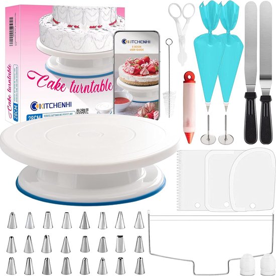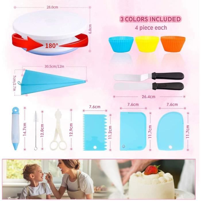 👨🍳 Polyvalent : Parfait pour la fabrication de gâteaux fondants, la décoration de crème au beurre, la décoration de cupcakes ou les fêtes d'enfants. Plateau Tournant Anti-dérapant Roulements Jemkgeik Kit Patisserie,Plateau Tournant Patisserie,Patisserie Accessoires Pâtisserie Douilles Spatules Les accessoires en acier inoxydable, sont lavables pour un gain de temps et d'efforts CONCEPTION STABLE ET ANTIDÉRAPANTE : Le dessous du plateau tournant est équipé d'un anneau en silicone antidérapant et d'un plateau texturé givré, stable et antidérapant lors de la décoration des gâteaux FACILE À NETTOYER : Kit patisserie professionnel comprend une brosse spéciale pour nettoyer la douille, ce qui permet d'éliminer facilement les résidus de crème et de glaçage, et est hygiénique et sans recoins. APPLICABLE DANS PLUSIEURS SCÉNARIOS : Ce plateau tournant est facile à réaliser, que ce soit pour des enfants bricoleurs, des débutants ou des pâtissiers professionnels préparant des gâteaux fondants. Kit pâtisserie plateau tournant 15 pièces : plateau 28 cm + 2 Tout le nécessaire pour une cuisson parfaite ! Que vous soyez débutant ou expert, ce coffret évoluera avec vous au fur et à mesure que vos compétences se développeront ! ⚡Nettoyage facile : Plateau tournant gateau la conception amovible et l'embout de nettoyage de douille dédié facilitent l'entretien. PLATEAU TOURNANT À GÂTEAU ROTATIF À 360° : Le plateau tournant à gâteau est doté de roulements de haute précision intégrés et prend , en charge la rotation dans le sens horaire/antihoraire, ce qui le rend idéal pour les utilisateurs gauchers et droitiers, les enfants, les débutants et les professionnels Il est idéal pour les anniversaires, les mariages, Noël, la fête des Mères et autres occasions. Vous trouverez ici 2 types de produits qui vont de paires : Des plateau tournants qui vous permettront de manipuler et sculpter efficacement votre gâteau... plateau tournant, douilles en inox, poches à douille, spatules, fouet, outils de précision et bien plus encore. Fini les dépenses inutiles... 🧰 Ensemble d'accessoires complet pour des résultats parfaits : 1 plateau tournant, 1 spatule en silicone, 1 spatule en acier inoxydable, 3 raclettes à pâte, 6 douilles en acier inoxydable, 2 poches à douille, 1 séparateur à œufs, 1 spatule triangulaire, un séparateur à gâteau, un adaptateur de douille, un embout de nettoyage de douille, un moule à gâteau, un couteau à gâteau et 15 moules de cuisson en silicone. ⚡ Mécanisme de rotation de précision : Le plateau tournant est équipé de roulements à billes de haute précision pour une rotation fluide et régulière, essentielle pour des enrobages lisses et des décorations délicates. MATÉRIAU DE HAUTE QUALITÉ : Ce plateau tournant gateau est fabriqué en polypropylène de haute qualité, robuste, durable et inodore. 🎂 Chumix kit patisserie – Le compagnon idéal pour vos pâtisseries créatives !