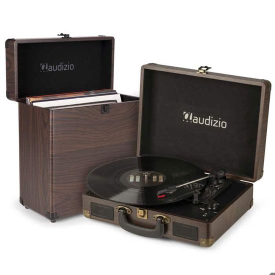 - Bluetooth In & Out - Haut-parleurs stéréo intégrés - Lecture 33, 45, 78 tours - Sortie RCA stéréo - Valise 30 vinyles bleue Pratique pour mixer vinyles et streaming dans un seul appareil. Valise vinyle RC32 bleue assortie, rigide et légère, avec capacité de 30 disques 12 pouces. Le Bluetooth In & Out vous permet de lire des morceaux depuis votre téléphone ou de diffuser le son vers une enceinte sans fil. Platine vinyle rétro avec étui à disques - Audizio RP116BL - Platine vinyle Bluetooth Platine RP116BL avec Bluetooth In & Out pour diffuser votre musique depuis un smartphone ou vers une enceinte sans fil. Avec ses haut-parleurs intégrés, elle fonctionne sans installation externe. Lecture 3 vitesses : 33, 45, 78 tours * Bluetooth bidirectionnel : In & Out * Haut-parleurs stéréo intégrés * Sortie RCA * Fonction arrêt automatique * Finition noire Valise vinyle Audizio RC32 * Capacité : jusqu'à 30 vinyles 12 * Structure rigide, intérieur rembourré * Fermeture métallique, poignée de transport * Finition noire... Kit compact, simple et complet, idéal pour débuter ou compléter votre coin vinyle personnel. Platine RP116BL avec Bluetooth et haut-parleurs Elle lit les vinyles en 33, 45 et 78 tours. Lecture 3 vitesses (33, 45, 78 tours) compatible avec toute votre collection vinyle. Lecteur 33 45 78 Tours Audizio RP330D - Platine Vinyle Avec 2 Haut-parleurs Intégrés 50W Ensemble Vinyle Débutant Complet Avec la RP116BL, profitez d’une platine vinyles tout-en-un pour écouter vos vinyles préférésRedécouvrez la musique vintage avec la platine vinyle RP116BL, idéale pour écouter vos vinyles préférés, elle est aussi un véritable objet de décoration. Que ce soit dans votre salon, votre bureau ou votre chambre, cette platine vinyle apportera une touche vintage et chic à votre... Parfait pour un coin vinyle moderne, esthétique et facile à intégrer chez soi.