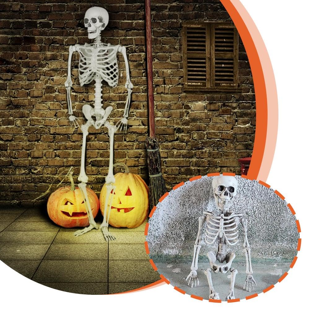 Remarques : En raison des différences dues à l'écran et à l'éclairage, la couleur de l'article peut être légèrement différente de celle de la photo. 1,5 mètre Squelette d'Halloween - Squelette humain grandeur Accessoire squelette d'Halloween multi-scènes : parfait pour les bars hantés, les cafés, les salles d'évasion, les salles de classe et les présentations de porche. Décoration Maison Hantée Fête 40cm Poseable Pleine Grandeur Nature Squelette Humain Halloween Party Décoration - Maison Squelette Articulé Poses Mobiles Hauteur extensible : environ 170 cm. Les mesures étant prises à la main, les tailles indiquées peuvent varier légèrement. Design réaliste grandeur nature : conçu pour reproduire avec précision les os humains à une hauteur totale de 1,7 m, ce squelette articulé apporte une touche authentique à vos décorations d'Halloween, parfait pour créer des atmosphères effrayantes dans votre terrasse, pelouse, cour ou jardin pendant les fêtes et événements Que ce soit assis sur une chaise ou regardant depuis une fenêtre, ce squelette de simulation apporte un réalisme étrange à la décoration saisonnière et maintient le facteur effrayant haut toute la nuit. Idéal pour les fêtes d'Halloween ou les scènes d'horreur à faire soi-même, cet accessoire squelette flexible s'adapte sur les chaises, les murs ou les installations suspendues pour ravir vos invités. GeRRiT Squelette d'anatoie Huaine Grandeur Nature, Outil d... Sa texture osseuse vieillie et ses proportions humaines offrent une véritable horreur. Décoration réaliste de squelette grandeur nature : cette réplique de squelette complet de 170 cm ajoute une touche terrifiante à n'importe quelle configuration d'Halloween. Squelette en plastique durable à réutiliser : fabriqué à partir de plastique épais, le squelette est conçu pour durer pendant de nombreux Halloween. Informations sur les tailles Dimensions approximatives : 39 x 17 x 165 cm. Ce squelette polyvalent améliore l'atmosphère d'Halloween dans n'importe quelle scène et peut être réutilisé pour le jour des morts ou les configurations sur le thème de l'horreur.