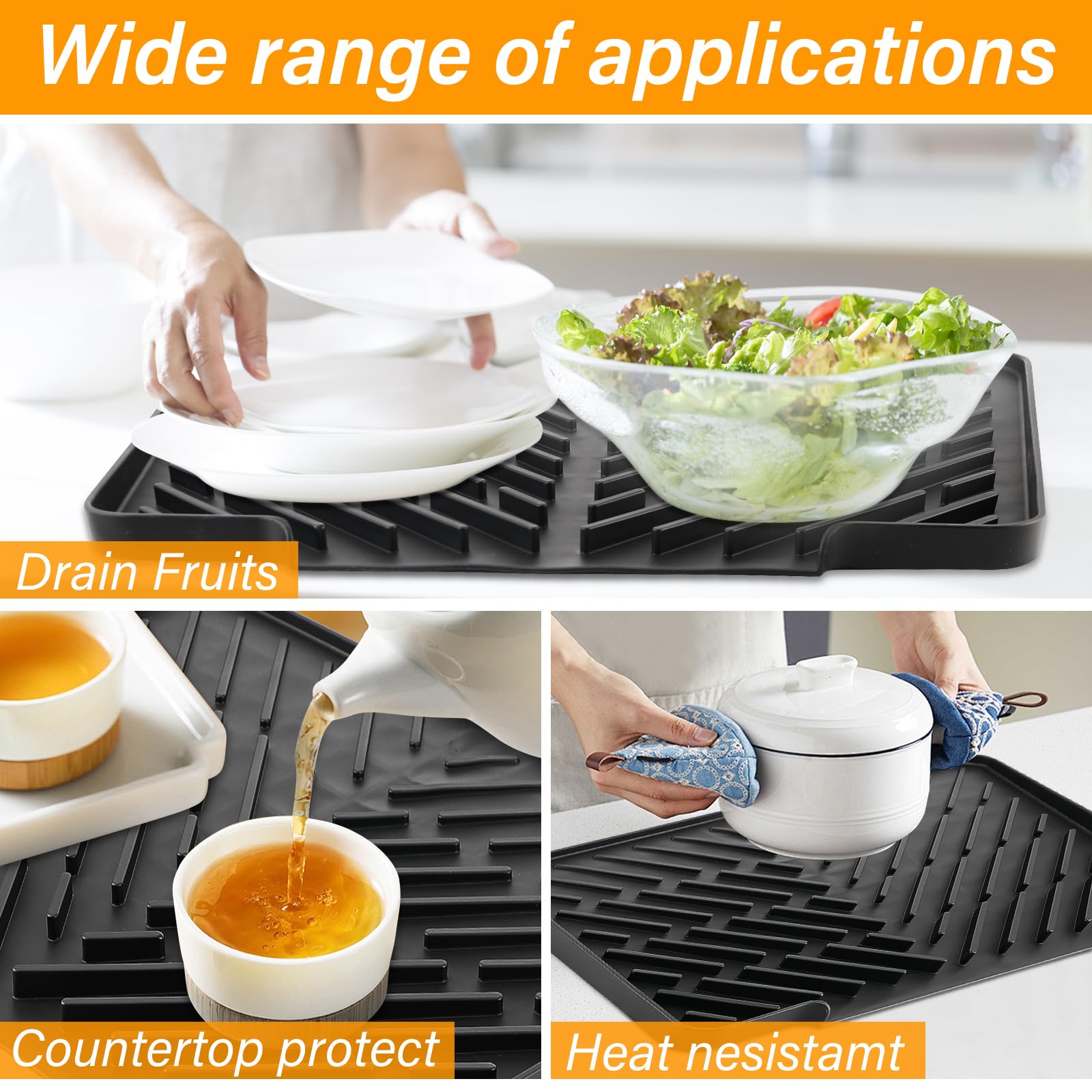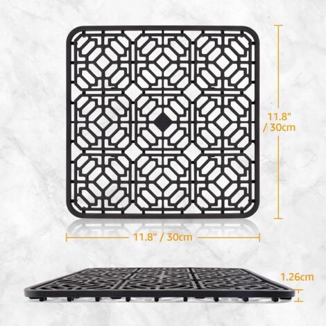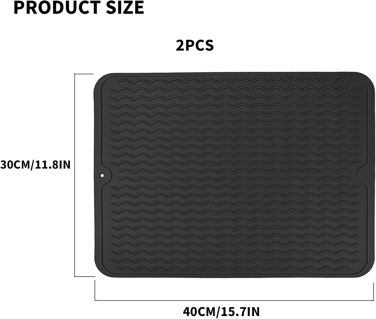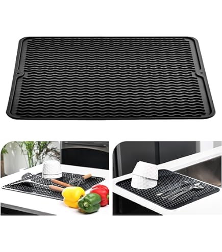 Tapis évier Cuisine Noir Tapis D'égouttement Pliable Avec Support Pour Vaisselle - Absorption Tapis Silicone 40x30cm Super absorbant : le tapis d'égouttement est fabriqué dans un matériau très absorbant qui absorbe rapidement le café ou les gouttes d'eau éparpillées et peut mieux cacher les taches d'eau, les taches de café et les taches de lait, de sorte que votre plan de travail reste propre et bien rangé Tapis de rail d'égouttement de barre en caoutchouc de PVC Barmat de Les bords surélevés empêchent les déversements et gardent votre plan de travail propre Tapis d'égouttement pour évier - 40 x 30 cm - En silicone - Surface inclinée et structure rainurée - Résistant à la chaleur - Antidérapant - Pour plans de... Rangement facile : le tapis d'égouttement résistant à la chaleur est très flexible et peut être roulé, plié ou suspendu pour économiser de l'espace Matériau de haute qualité : le tapis d'égouttement est fabriqué en silicone de haute qualité, sans BPA, non toxique et facile à nettoyer Design à séchage rapide : le tapis d'égouttement noir dispose d'un design rainuré ondulé qui permet une ventilation, une évaporation rapide et un drainage efficace de l'eau. Spécifications: Marque : FRUHLING Nom du produit : tapis d'égouttement antidérapant Matériel: silicone Couleur : noir., Quantité : 1 pièce., Dimensions : 30 x 40 cm., Avantages : 1., Le tapis d'égouttement en silicone est parfait pour poser la vaisselle vaisselle.