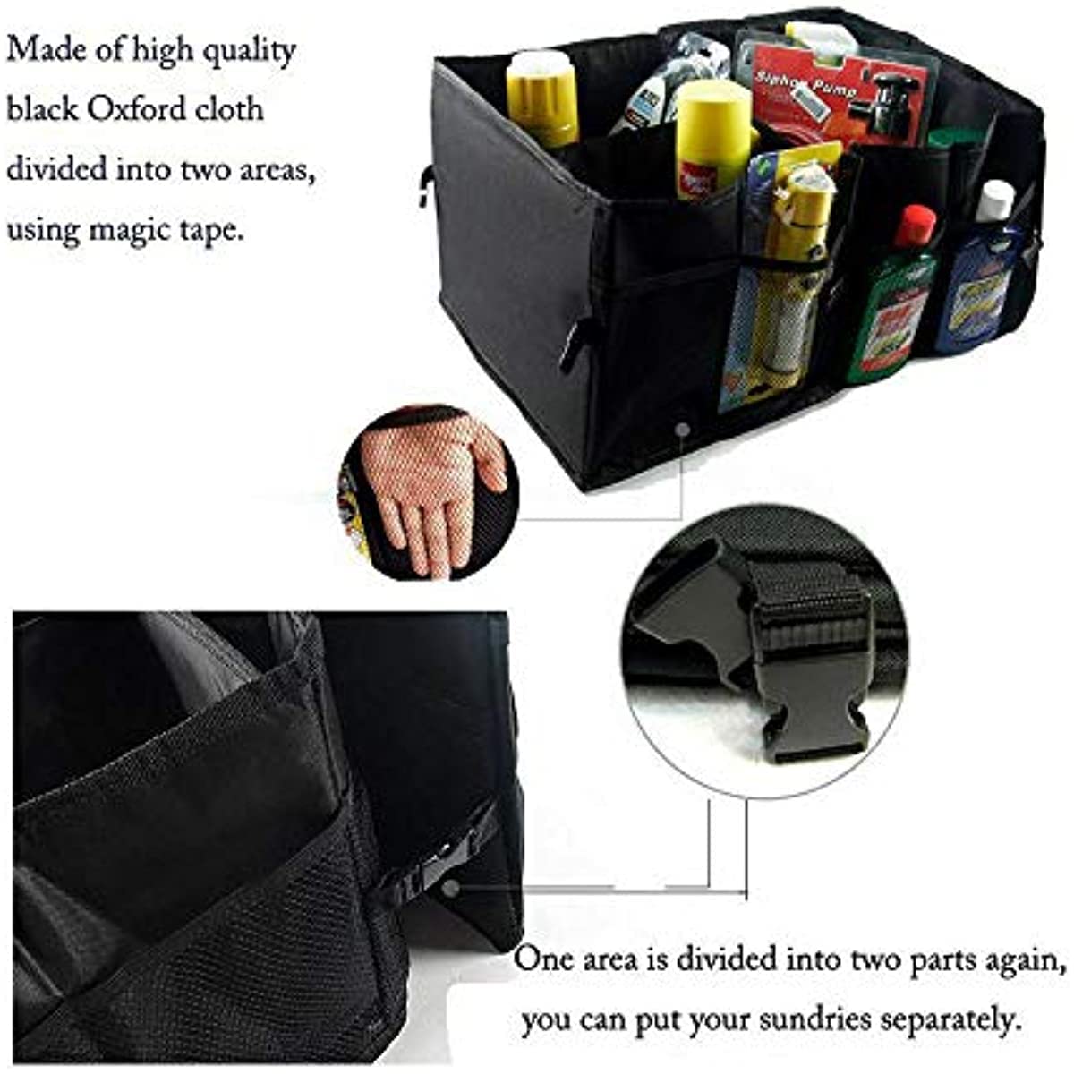 Les bords arrondis et les fermetures éclair de sécurité enfant protègent la voiture et les utilisateurs Sac Rangement Coffre Pliable 65x32x30cm Acheter Organisateur De Coffre De Voiture Pliable, Boîte De Rangement Pliable Multi-compartiments, Antidérapant, Imperméable, Tissu Oxford 600D, Boîte De Rangement Automatique De Grande Capacité Organisateur Voiture Pliable Noir 3 compartiments principaux (avec 2 séparateurs extensibles à 5) LAN Bac de rangement de coffre Sac coffre pliable Organisateur portable... Les coutures doubles et le cadre stable garantissent une charge maximale de 15 kg Design pliable peu encombrant : avec un poids de seulement 1214 g, l'organiseur peut être plié à plat à une hauteur de 5 cm. Sac de Coffre Pliable avec 2 Compartiments et 2 anses | Rangement... Le compartiment isotherme étanche spécial garde les aliments ou les boissons au frais, tandis que la poche latérale offre un espace de rangement supplémentaire pour les outils ou les trousses de premiers secours 1 compartiment (avec cloison extensible à 2) Nombreuses utilisations : idéal pour les sorties en famille, le camping ou la vie quotidienne. Coffre de voiture SUV 600D Oxford 600D pliable multi-usage boîte Compartiments généreux : cet organiseur pliable dispose de 5 compartiments (3 compartiments principaux avec 2 séparateurs) et 4 poches en maille. Sécurité et stabilité : le fond antidérapant et la base renforcée assurent une prise ferme même sur des routes inégales.