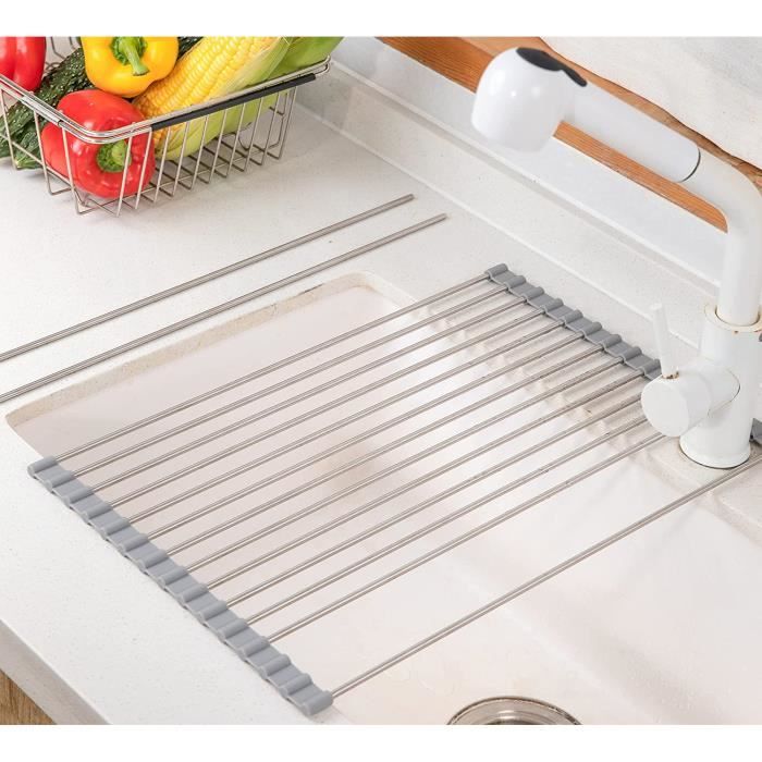 Résistance à la chaleur Le séchoir de cuisine sans BPA, résistant à la chaleur jusqu'à 460 °F (240 °C), peut être utilisé comme dessous de plat résistant à la chaleur sur le comptoir. Support Vaisselle Inoxydable SUS304 Égouttoir à Vaisselle Pliable Gris 20 Tubes 37 X 40 Cm, 1 Accessoire Cuisine Rangement Compact Ensuite, roulez-le et rangez-le dans un tiroir. Vous pouvez l'enrouler sur le séchoir à vaisselle de l'évier autant que vous le souhaitez pendant son utilisation et les tuyaux peuvent également être amovibles. En termes de construction, les poignées en caoutchouc antidérapantes à chaque extrémité sont fermement fixées aux tuyaux en acier inoxydable, ce sont nos avantages uniques. Facile à nettoyer et ne craint pas la rouille et l'huile. Egouttoir vaisselle pliable au meilleur prix | Leroy Merlin Lorsque le séchoir de comptoir n'est pas utilisé, vous pouvez facilement l'enrouler et le mettre dans votre armoire. [Tapis de séchage pour vaisselle peu encombrant] - Cet égouttoir à vaisselle peut s'enrouler et se glisser rapidement dans un tiroir lorsqu'il n'est pas utilisé. Fonctions diverses Cet égouttoir à vaisselle pliable peut non seulement être utilisé comme égouttoir à vaisselle, comme les assiettes lavées, les casseroles, les tasses, les ustensiles de cuisine, les couverts, mais aussi comme passoire à légumes pour le lavage des fruits et légumes. L'apparence de l'acier inoxydable à tube carré brillant rend la cuisine plus luxueuse. [Plusieurs tailles pour tous les éviers] -- Le séchoir à enroulement adopte une conception pliable et est facile à ranger. Description générale Ce séchoir à vaisselle pliable en acier inoxydable est un accessoire polyvalent pour votre cuisine. Il peut être utilisé comme égouttoir pour assiettes, casseroles, tasses et ustensiles, mais également comme passoire pour laver fruits et légumes. En outre, il sert de dessous de plat pour protéger votre comptoir des chaudrons et casseroles chauds. Son design... Égouttoir à Vaisselle Pliable en Acier Inoxydable pour sécher Les... Facile à ranger et gain de place Ce séchoir enroulable présente une conception pliable et est facile à ranger. L'égouttoir à vaisselle enroulable prend peu de place et permet d'économiser de l'espace de rangement dans votre cuisine. Fonctionne très bien et garde l'évier de la cuisine propre, le meilleur des égouttoirs à vaisselle pour le comptoir de la cuisine. Égouttoirs à légumes et fruits, grands supports à vaisselle de cuisine pour comptoir.
