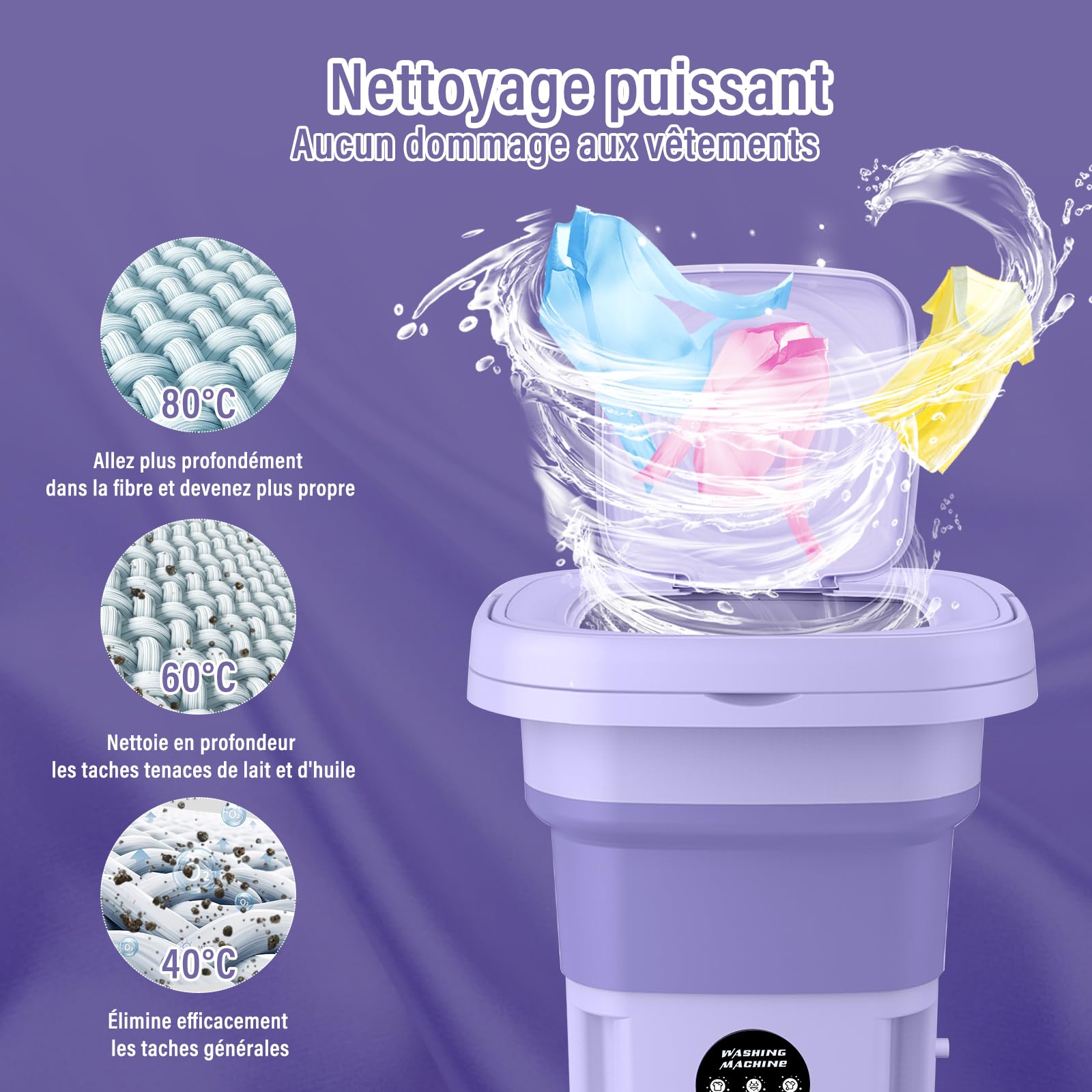 Sa classe énergétique A en fait une solution écologique et économique, parfaite pour les petits espaces ou la vie nomade. Machine à Laver Camping Pliable Mini Machine À Laver Portable Machine À Laver 9L Pratique Peu Machine A Laver Enfant Description du produit Nettoyage et entretien , 1., Veuillez nettoyer la machine à laver à l'intérieur et à l'extérieur après chaque utilisation pour éviter l'accumulation de saleté et affecter l'effet de lavage., 2., Vérifiez périodiquement le drain et la crépine pour éliminer la saleté et les débris accumulés. Les lave-linge sont des appareils électroménagers essentiels, mais parfois encombrants pour les petits espaces. Si vous cherchez un mini lave-linge pour votre appartement, votre bateau ou votre camping-car, les modèles présentés ci-après pourraient certainement vous intéresser Libérez-vous des contraintes de lavage, même en déplacement ! Avec sa capacité généreuse de 9 litres, elle est idéale pour laver les sous-vêtements, vêtements bébé, chaussettes et t-shirts. Pliable Mini Machine À Laver Portable Machine À Laver 9L Pratique Peu... Veuillez réessayer plus tard., 4., S'il y a un bruit ou des vibrations anormaux, veuillez vérifier si la machine à laver est sur une surface stable et s'il y a trop de vêtements à l'intérieur., 5., Si la machine à laver ne vidange pas correctement, veuillez vérifier si le drain et le filtre sont bouchés. Remarque : un bouton fonctionne pour tous les modes, Dépannage 1., Si la machine à laver ne peut pas être démarrée, assurez-vous que la prise d'alimentation est correctement branchée et que l'alimentation électrique est normale., 2., Si le lave-linge ne fonctionne pas après le démarrage, veuillez vérifier si le programme de lavage approprié est sélectionné., 3., Si le lave-linge s'arrête soudainement pendant le fonctionnement, veuillez vérifier s'il y a une panne de courant ou d'autres problèmes d'alimentation. Grâce à son puissant système de nettoyage, elle offre une performance de lavage comparable à un lavage à la main, tout en étant automatique et pratique. Mini Machine À Laver Pliable 100-240 V - Machine À Laver Portable 9 L Si ce n'est pas le cas, la protection contre les surcharges s'est peut-être déclenchée. Compacte et ultra facile à transporter, cette machine pliable se range n’importe où.