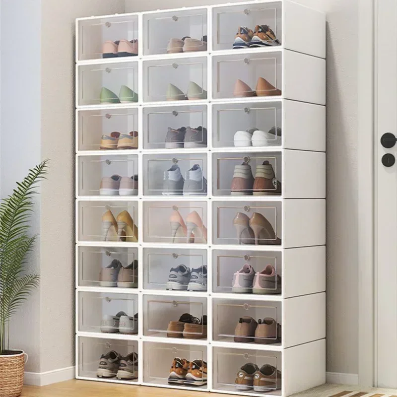 Il peut se ranger lorsque vous ne l'utilisez pas. 【 Pour ranger des bottes longues 】 Ce meuble à chaussures multicouche est habilement conçu pour contenir différents types de chaussures. Grâce à sa structure pliable intégrée, cette boîte à chaussures peut être assemblée en seulement 3 à 5 minutes, ce qui vous permet d'économiser du temps et des efforts. 1 boîte d'emballage. Boîte à Chaussures Transparente, Empilable et Pliable pour Chaussures 【Structure robuste】La boîte empilable pour chaussures est fabriquée en matériau PP + PS de haute qualité, robuste et fiable. 1 manuel d'utilisation (français non garanti). Meuble À Chaussures Multi-Couches Meuble À Chaussures Pliable Pour Organisateurs Et Stockage... Peut accueillir des tailles standard telles que les baskets, les ballerines, les talons hauts, etc. Poids : 9 étages : 7,8 kg, 6 étages : 5,5 kg Contenu de l'emballage : 1 boîte à chaussures pliable. 【Rapide et facile à monter】 Organisateur de chaussures pliable conçu pour une utilisation facile. Boîte Chaussures Gain Place Boîte à Chaussures Pliable, Organisateur Empilable En Plastique Transparent Pour Baskets Organisateur Plastique Pliant Facile à installer ou à démonter - Livré avec des pièces supplémentaires et un manuel d'installation (français non garanti). Aucun outil nécessaire, il suffit d'assembler l'unité à la main avec les pièces fournies, rapidement et vous apporte beaucoup de commodité. Robuste et léger Pour votre garde-robe, chambre à coucher, salon, garage, grenier ou même en plein air.