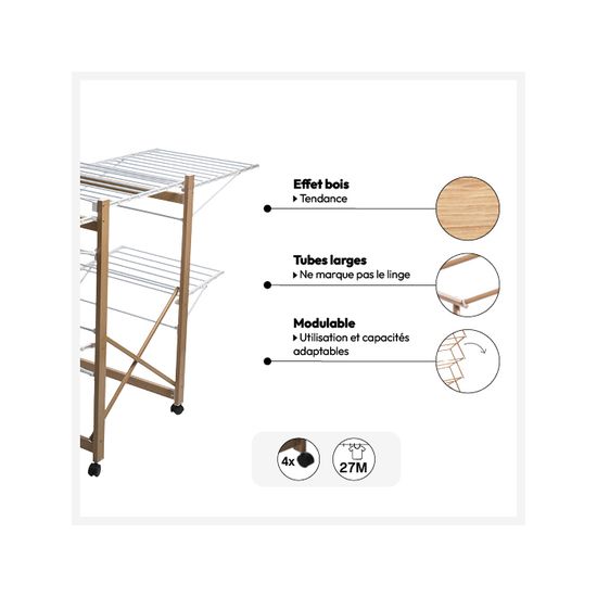 Étendoir à linge sinai 26m extensible & modulable sur roues - 5five... GAIN DE PLACE ET DESIGN EFFET BOIS : entièrement pliable pour un rangement facile, il combine praticité et esthétique naturelle pour s’intégrer à votre intérieur. 5five propose des solutions intelligentes pour organiser et aménager chaque pièce de la maison, afin de faciliter le quotidien ! Seche Linge 5five - Étendoir à Linge Pliant Tour Mojave - Séchoir 40 Mètres En Etendoir Linge MOBILITÉ OPTIMALE : équipé de 4 roues pivotantes, cet étendoir se déplace sans effort d’une pièce à l’autre, même chargé. Étendoir à linge pliant tour 30m GRANDE CAPACITÉ D’ÉTENDAGE : profitez de 40 mètres de surface pour sécher facilement plusieurs machines de linge, idéal pour les familles ou les grandes lessives. Nos 10 Meilleurs Étendoir À Linge 5five pour 2025 [FR