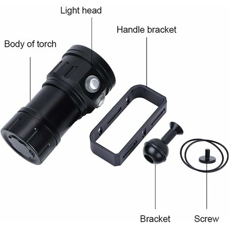 Spécification: Condition: 100% tout neuf Matériau: alliage d'aluminium Couleur: noir Luminosité: 18000lm Tension: 3., 7V Portée: 300-500m Ampoules: 15pcs 5050 lumière blanche XML2, 6pcs XPE lumière rouge R5, 6pcs XPE lumière bleue R5 Mode d'éclairage de la lumière blanche: forte / moyenne / faible / longue, appuyez pendant 2 secondes pour l'éteindre. Lampe de Poche de Plongée, Lampe de Poche de 【7 modes et 2 commutateurs】 Mode de commutation de la lumière blanche (touche d'alimentation gauche): Élevé / Moyen / Faible / OFF (Appuyez longuement sur la touche pendant 2 secondes quel que soit le mode) ; Mode de commutation des voyants rouge et bleu (touche d'alimentation droite): Clignotement lent rouge / rouge / clignotement rapide bleu / rouge (double-cliquez sur le bouton dans n’importe quel mode) / OFF (appuyez longuement sur le bouton pendant 2 secondes dans n’importe quel mode) Lampe Plongée étanche Aigend Lampe De Plongée, Étanche IPX8 Lampe De Poche Sous-Marine Lampe Torche Submersible Appuyez deux fois sur le commutateur pour régler la luminosité et le mode d'éclairage. Mode d'éclairage de la lumière rouge bleue: Strobe rouge / rouge / Bleu / Double clic pour stroboscope / Appuyez longuement pendant 2 secondes pour l'éteindre. Jeffergarden Lampe de poche de plongée LED lumière blanche torche de... Fonction de protection contre la surchauffe et fonction de protection contre les températures élevées pour éviter que la lampe de poche ne s'endommage en raison d'une surchauffe; La protection contre l'inversion de polarité empêche la mauvaise installation de la batterie 【Angle de faisceau large et poignée pratique】Angle de rayonnement large de 120 degrés, adapté à la photographie sous-marine et à un éclairage supplémentaire. Lampe de plongée sous-marine puissante et étanche - Test et Avis 【Super Bright】 Température de couleur de la lumière blanche: 6000k, Longueur de la lumière rouge: 620nm, Longueur de la lumière bleue: 455nm, La profondeur de plongée maximale est de 80m / 262ft sous l’eau, la sortie maximale de 18000 lm permet une distance de 1640ft / 500m (sur terre) S'il vous plaît, comprenez que les couleurs peuvent exister en tant qu'aberration chromatique en tant qu'emplacement différent des images. Conçu avec une poignée dure pour transporter facilement, également pratique pour les autres activités de plein air comme le camping, la pêche, la randonnée, la spéléologie. IPX8 design étanche et portable, portable et facile à transporter sous l'eau. Utilisé trop longtemps à terre, il peut faire trop chaud.