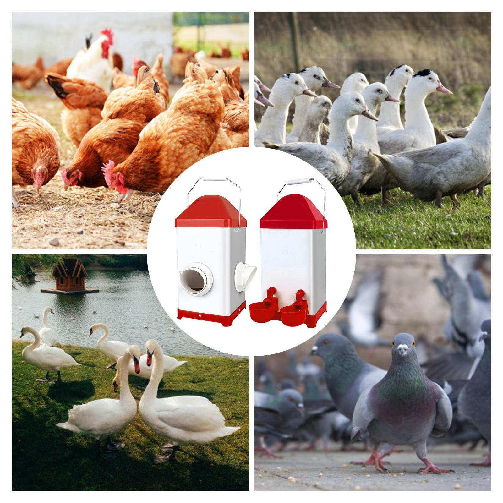 Facile à installer et à utiliser : notre kit d'alimentation pour poulets est très pratique à utiliser en suivant les instructions. Il peut contenir jusqu'à 3 kg de nourriture et, après avoir ajouté une fois des granulés pour poulets, il peut maintenir une période d'alimentation plus longue, ce qui évite d'avoir à ajouter des graines plusieurs fois par jour et permet d'économiser du temps et de l'énergie. Mangeoire 3 Kg étanche Mangeoire Automatique, Anti Pluie, Anti Rongeur, Anti Gaspillage Pour Canard /oie (17 KG Distributeur Nourriture Volaille Gravité Notre Mangeoire Automatique Pour Poulet Peut Accueillir Jusqu'à 68 Kg De Céréales Et 38,6 à 50 Kg De Granulés. Équipé De 6 Ports, Notre Mangeoire à Volaille... Matériau PVC de haute qualité : la mangeoire automatique pour poulets est fabriquée à partir d'un matériau PVC épaissi de haute qualité, robuste et durable, qui résiste au vent, à la pluie, aux picorages et à l'usure. Description du produit Mangeoire automatique pour volaille en PVC Distributeur automatique de nourriture pour poulets : ce distributeur est conçu selon le principe de la gravité afin de maintenir un approvisionnement continu en nourriture et d'éviter le gaspillage. L'ouverture d'alimentation a une largeur de 11 cm et une hauteur de 10,5 cm. Grâce à la structure transparente du pipeline, vous pouvez comprendre intuitivement la consommation d'aliments, ce qui vous aide à réapprovisionner raisonnablement et à fournir des solutions d'alimentation efficaces pour la volaille. Cette mangeoire automatique pour volaille en PVC, fabriquée en PVC, a une capacité de 3 kg, résiste aux intempéries et est facile à installer. Il existe trois façons d'utiliser les mangeoires pour volailles, qui peuvent être installées sur des filets métalliques, des planches de bois ou des murs solides, et conviennent à diverses volailles telles que les poulets, les canards, les pigeons, les cailles, les dindes, etc. Les mangeoires pour volaille en PVC sont fabriquées en PVC, disposent de tuyaux transparents, empêchent le vol de nourriture et permettent d'ajouter facilement de la nourriture. Mangeoire pour volaille à fixer - 2,5 kg Le couvercle crypté supérieur est pratique pour remplir la mangeoire, tandis que le couvercle inférieur empêche l'eau de pluie de pénétrer et garde la nourriture au sec. Dimensions du produit : cette mangeoire pour volaille a une hauteur totale de 42 cm, une longueur inférieure de 23 cm et un diamètre de 11 cm. Conception améliorée de la mangeoire pour volaille en PVC Mangeoire pour volailles en grille galvanisée Duvoplus