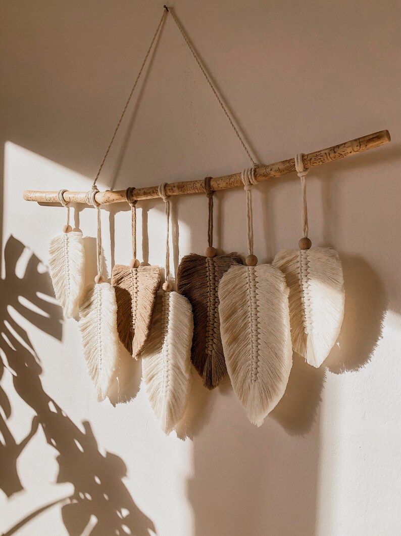 Cadeau parfait : ce kit de suspension murale en macramé est parfait comme cadeau pour les amateurs de tricot à la main et les tricoteurs débutants, il peut apporter joie et chaleur à n'importe quel espace Cadeau parfait:ce kit de suspension murale en plumes de macramé est parfait comme cadeau pour les amateurs de tricot à la main et les tricoteurs novices. Excellente qualité:notre ensemble de suspension murale en plumes est fabriqué à partir de corde de coton de haute qualité, qui est de très bonne qualité en tant qu'article tissé à la main, qui peut être utilisé pendant une longue période sans surprises. Suspension Murale Feuille Macramé FREEBLOSS Kit Macramé Plume Kit D'Accrochage Mural De Suspension Murale Feuille Boho Kits de macramé pour adultes débutants:nous vous fournissons des instructions très détaillées, même si vous êtes novice, vous pourrez réaliser une pièce parfaite avec suffisamment de patience. Gabarit feuille macramé | maison-macramé Kit de plumes en macramé:Le kit de macramé bohème comprend 10 rouleau de corde en coton de 20 mètres de long (blanc, jaune, bleu, vert clair, vert foncé, et rouge), un bâton de 30cm , et toutes les autres outils nécessaires pour terminer le tissage. Kit Macramé Suspension Plante - Atelier Macramé