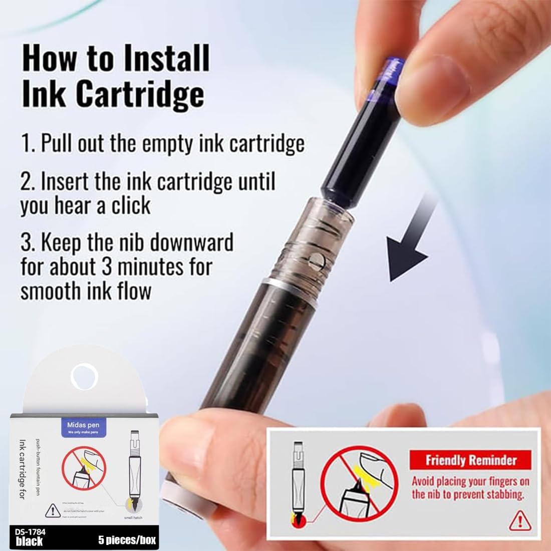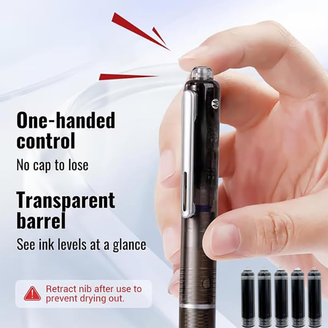 Couleur de l'encre : bleu, noir (non effaçable). ➤Remarque : Les mesures étant prises à la main, les tailles indiquées peuvent varier de 1 à 2 cm., 2., La couleur de l'article peut varier de celle de la photo en fonction des paramètres d'affichage et de luminosité de votre ordinateur. 【Design rétractable et transparent】 : le stylo plume rétractable de 0,38 mm Protectivemethod dispose d'un design télescopique qui permet une utilisation facile d'une seule main, éliminant les tracas de perdre le capuchon du stylo. Couleur du corps du stylo : noir, vert, bleu clair, bleu foncé, noir uni, bleu pur, orange pur. Stylo D'Écriture À Encre Rechargeable De Type Presse | Stylos Plume 5/10 cartouches d'encre rechargeables. Matériau : coque en plastique + pointe en métal. Stylo plume YOSOO - Cartouche d'encre - Blanc - Pointe moyenne... 【Confort ergonomique】: la zone de préhension ergonomique garantit une expérience d'écriture confortable et sans fatigue, même pendant les longues sessions d'écriture ➤Caractéristiques : Nom du produit : stylo plume rétractable., Caractéristiques : stylo-plume. Nous vous remercions de votre compréhension. Cartouches Rechargeables écriture Fluide Stylo Plume Rétractable, Rechargeable, 0,38 Mm, Encre Bleue Stylo Plume Sans Capuchon Clic Mécanisme Design rétractable et transparent] : le stylo plume rétractable de 0,38 mm Protectivemethod dispose d'un design télescopique qui permet une utilisation facile d'une seule main, éliminant les tracas de perdre le capuchon du stylo Respectueux de l'environnement et rechargeable : équipé de 5 recharges d'encre bleue, il prend en charge le remplissage et l'utilisation répétés, réduisant le gaspillage de ressources causé par les stylos jetables, en tenant compte des besoins d'écriture et des concepts de protection de l'environnement, et réalisant une écriture à long terme