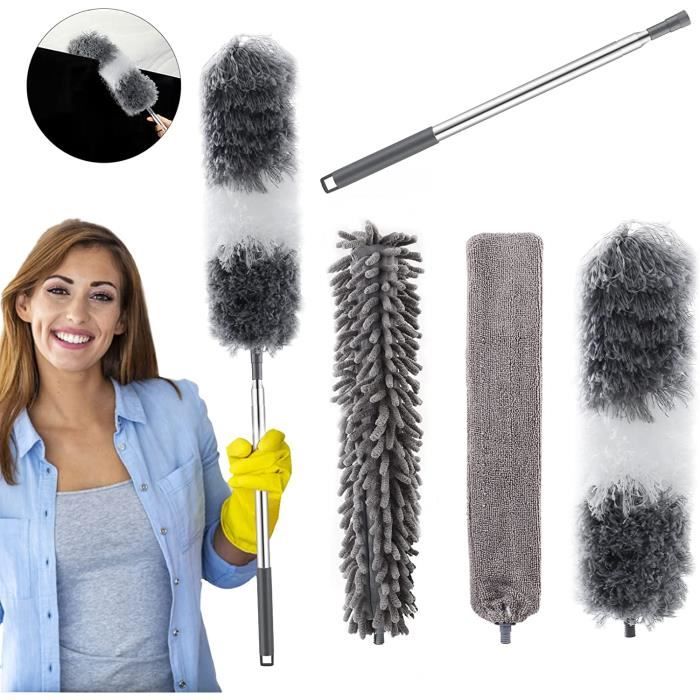 4 En 1 Plumeau Poussière Plumeau Telescopique Tete De Loup Telescopique La tête de loup télescopique Eléphant est le produit indispensable pour dépoussiérer les surfaces et objets difficiles d’accès. Pratique et maniable, son manche télescopique en acier anti-glisse passe de 1m à 1,80m pour vous permettre d’atteindre les surfaces en hauteur Outil Ménage Plumeau Telescopique 6m, Tete De Loup Telescopique Avec Extension Plumeau Télescopique Nettoyage Plumeau Telescopique 4., 5m, Tete De Loup Telescopique avec Extension RéGlable 4., 5m, 2 Chiffons de Rechange, Microfibre Lavable, pour Ventilateur De Plafond, Fenêtres, Murs Et Abat-Jour Parfait pour le nettoyage intérieur et extérieur des maisons, bureaux et espaces commerciaux. Manche réglable de 4,5 m - Atteignez facilement les hauts plafonds, les ventilateurs, les fenêtres et les coins avec notre plumeau télescopique extra-long... 🔍 Manche réglable de 4,5 m - Atteignez facilement les hauts plafonds, les ventilateurs, les fenêtres et les coins avec notre plumeau télescopique extra-long de 4,5 m, sans échelle ! La poignée ergonomique et antidérapante assure confort et contrôle pour une utilisation prolongée. Sa conception compacte facilite son rangement dans un placard ou une buanderie. 🚀 Rangement léger - le corps du poteau est fabriqué en aluminium léger de haute qualité, flexible et solidement verrouillé.