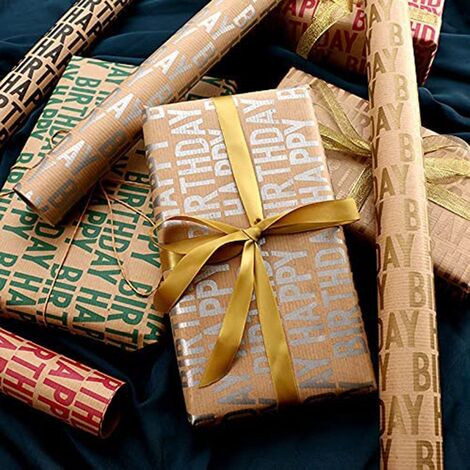 Set de 3 rouleaux Papier cadeau Kraft 2x0,7m Wahouh : Chez... Set Multi-Motifs - Surprises Festives]Ce set contient 6 rouleaux de papier cadeau kraft avec différents motifs classiques de Noël tels que le Père Noël, le renne, les flocons de neige et les carreaux vintage. Il comprend également 6 étiquettes Dérouleur Papier Cadeau RUSPEPA Rouleau De Papier D'Emballage Cadeau Kraft - Plusieurs Motifs Bleus Et Blancs, Parfaits Pour Les Félicitations, Les Vacances, Chanukah - 6 Rouleaux - 76 X 305 Cm Par Rouleau Papiers Cadeaux Originaux Rouleau Papier Cadeau FSC volutes rouges sur kraft brun vergé